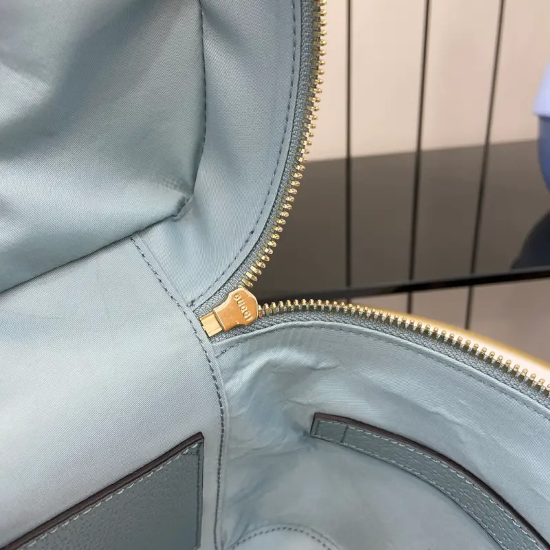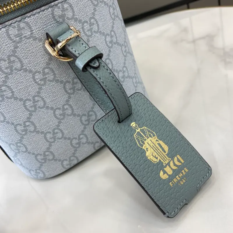 Style number: 811489. Dimensions: 25cm (width) x 17.5cm (height) x 15cm (depth). Color: Gray-blue/Original leather. Made in Italy.