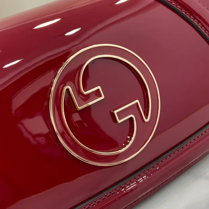 [Comes with a full set of original red box packaging] [New product] The new handbags in the Gbag Blondie series are decorated with the classic logo of the brand series that debuted in the early 1970s. It cleverly combines the charm of heritage with contemporary style, and brilliantly interprets the brand’s classic design and modern essence. This mini shoulder bag is made of Gbag Ancora patent leather, with an enamel brand circular logo and a gold-tone chain shoulder strap. Gbag Ancora patent leather Gbag Ancora patent leather piping Brown cotton and linen blend lining Enamel circular interlocking double G Interior: one open pocket Exterior: 1 back open pocket Chain shoulder strap (51 cm high) Magnetic clasp closure Weight: approximately 0.4 kg Model: 815711. Dimensions: 21.5 cm (width) x 11 cm (height) x 8 cm (depth) Color: Ancora patent leather/original leather. Made in Italy