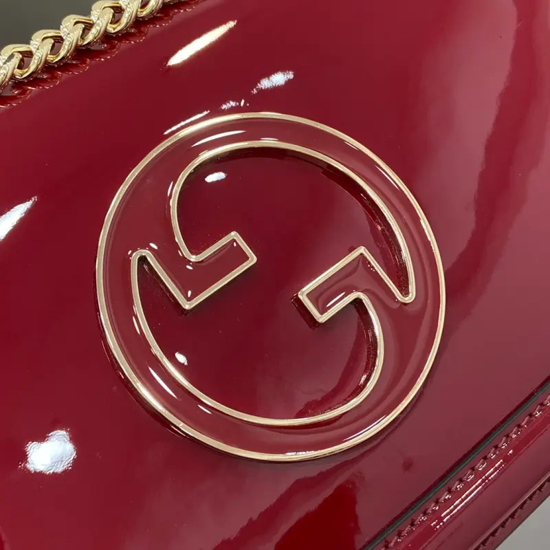 [Comes with full original red box packaging] [New Arrival] The new handbag from the Gbag Blondie collection features the iconic logo of the brand, which debuted in the early 1970s. It cleverly combines heritage charm with contemporary style, perfectly embodying the brand’s classic design and modern essence. This small shoulder bag is crafted from Gbag Ancora patent leather and features an enameled circular brand logo. It comes with a gold-tone chain shoulder strap and a leather shoulder strap for easy shoulder or crossbody wear. Gbag Ancora patent leather, Gbag Ancora patent leather piping, brown cotton and linen blend lining, enameled circular interlocking Double Gs. Interior: 1 zipper pocket. Exterior: Back open pocket. Sliding chain shoulder strap that can be adjusted to a 48cm high shoulder strap or a 29cm high top handle. Magnetic closure. Model No.: 815715. Dimensions: 26.5cm (width) x 16.5cm (height) x 8.5cm (depth). Color: Ancora patent leather/original leather. Weight: Approximately 600g. Made in Italy.