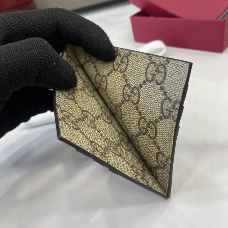 [Comes with a full set of original red box packaging] [New product] The GG Emblem series reinterprets the classic pattern with creative design and innovative functions, and is ingeniously created to be a collectible choice for years to come. This card holder is crafted from brown shiny leather, and the new GG monogram pattern fabric is cleverly integrated into the interior, reinterpreting the new accessories series. The front is carefully decorated with Gbag embossing and has multiple compartments inside. Brown smooth leather New GG monogram pattern Coated fabric interior Gbag embossed Interior: 1 open pocket and 6 card compartments Weight: approximately 51 grams Model: 818952. 10 cm (width) x 8 cm (height) Color: brown pvc/original leather. Made in Italy