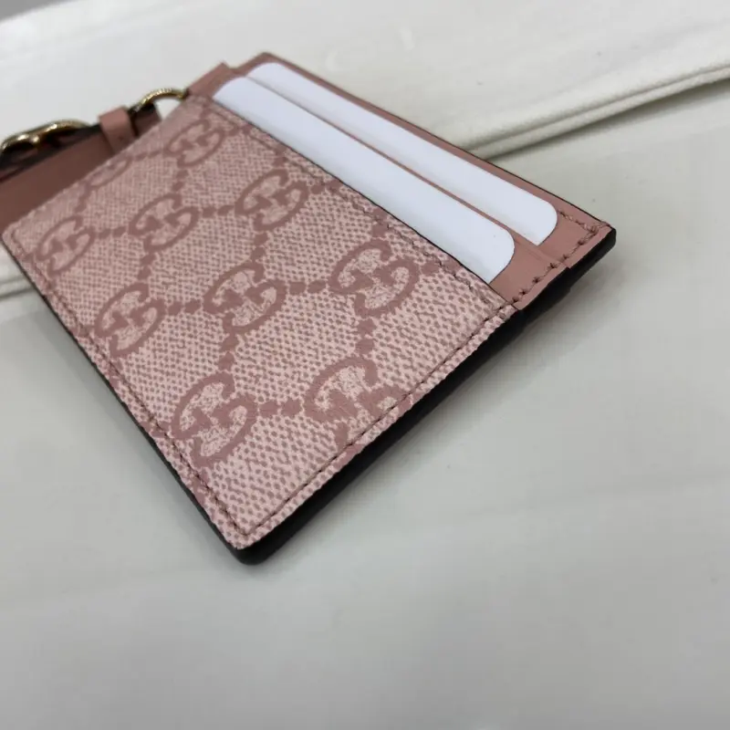[Comes with a full set of original counter packaging] [New Product] The GG Emblem series reinterprets the brand’s timeless elegance and exquisite craftsmanship. This light pink card holder is ingeniously crafted with GG Monogram coated fabric. The multi-compartment design is convenient and practical, and the leather wristband adds texture. Light pink GG Monogram coated fabric, light pink leather piping, taffeta lining, interior: 4 card compartments (2 on each side) and 1 top card compartment, leather wristband model: 819121. Size: 7 cm (width) x 10 cm (height) Weight: approximately 65 grams Color: light pink pvc/original leather. Made in Italy