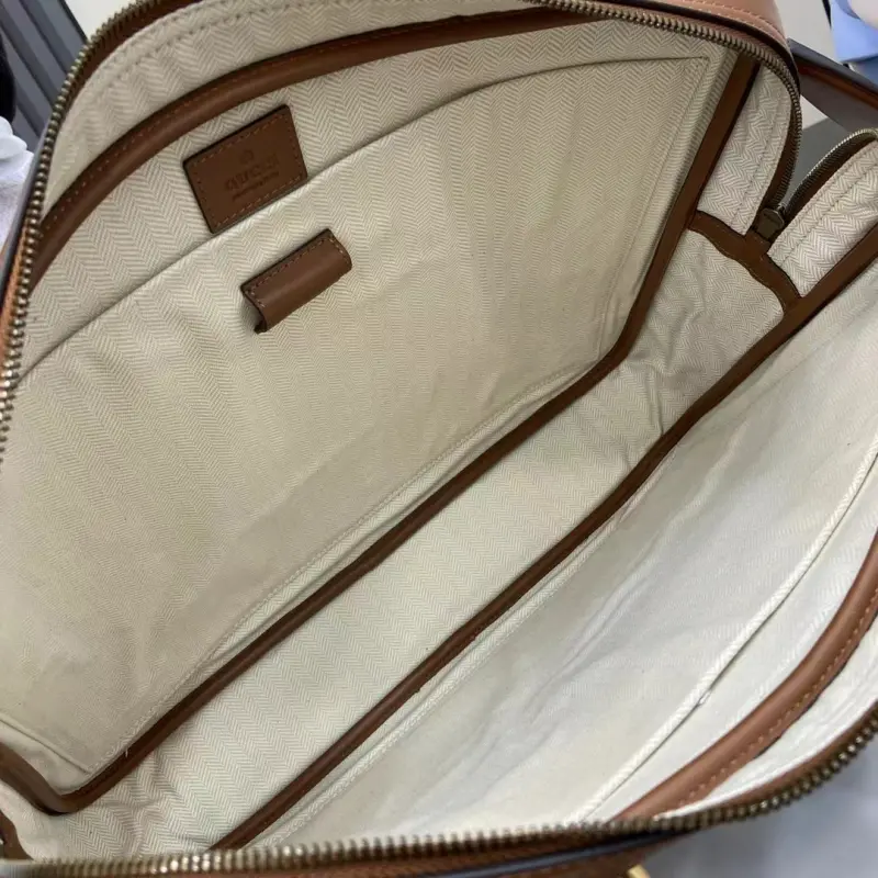 ??With a full set of original counter packaging????New Products??The new GG Emblem series of men’s travel items reinterprets the brand’s timeless elegance and exquisite craftsmanship. This briefcase is crafted from brown soft leather, shining with a natural luster, cleverly embellished with exquisite Gbag printed embossed logo details. Brown soft leather with a natural luster Gbag printed embossed logo cotton lining Interior: a padded laptop compartment Exterior: 1 lock and key ring, 1 cowhide open pocket and 1 D-ring Handle: 10 cm high detachable canvas shoulder strap (60 cm high); length can be adjusted from 90 cm to 140 cm Zipper closure model: 821149. Dimensions: 40 cm (width) x 30 cm (height) x 6 cm (depth) Weight: approximately 1.4 kg Color: brown full leather/original leather. Made in Italy