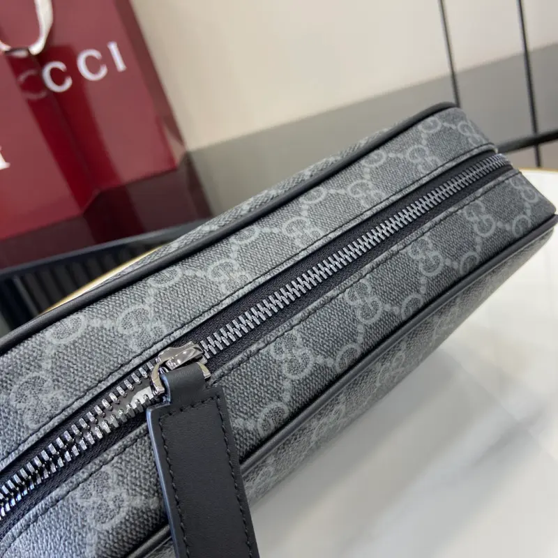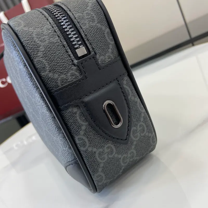 [Comes with a full set of original green box packaging] [New Product] The new GG Emblem series reinterprets the brand’s timeless elegance and exquisite craftsmanship. This toiletry bag is ingeniously crafted with a new black GG letter pattern coated fabric, with an open pocket and an external D-shaped ring for hanging other accessories. Black new GG letter pattern coated fabric, black leather piping, nylon lining, interior: one open pocket, exterior: 1 D-ring zipper closure, model number: 821164. Dimensions: 23.5 cm (width) x 15 cm (height) x 6 cm (depth) Weight: approximately 0.3 kg Color: black PVC/original leather. Made in Italy
