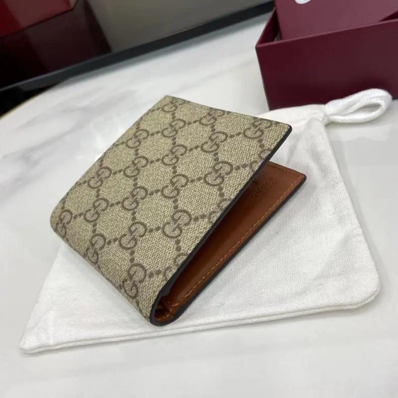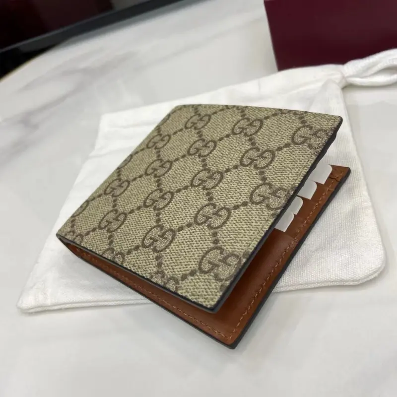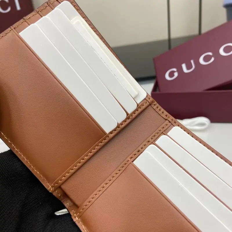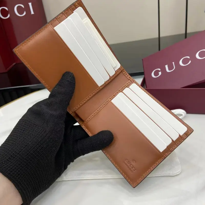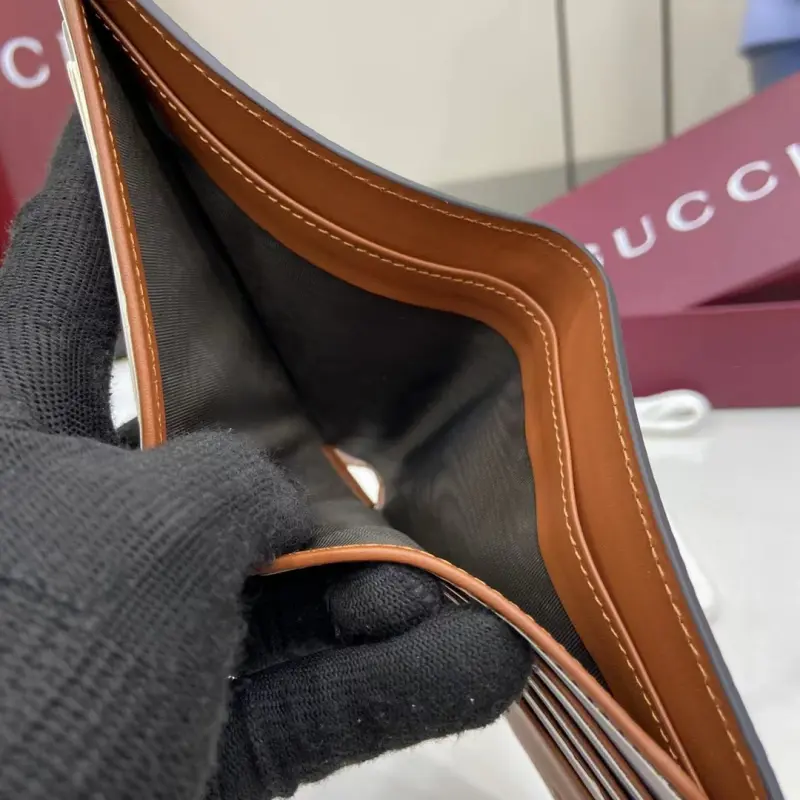 ??Comes with a full set of original red box packaging????New product??The GG Emblem series reinterprets the classic pattern with creative design and innovative functions, and is ingeniously created to be a collectible choice for years to come. This bifold wallet is ingeniously crafted with the new GG monogram pattern fabric in beige and dark brown, reinterpreting the new accessories series. It has eight card compartments and a multifunctional banknote compartment. Beige and dark brown new GG monogram pattern coated fabric Brown leather lining Interior: 8 card compartments and 1 banknote compartment Weight: approximately 60 grams Model: 821200. Dimensions when closed: 11 cm (width) x 9 cm (height) Dimensions when open: 21 cm (width) x 9 cm (height) Color: brown/brown pvc. Made in Italy