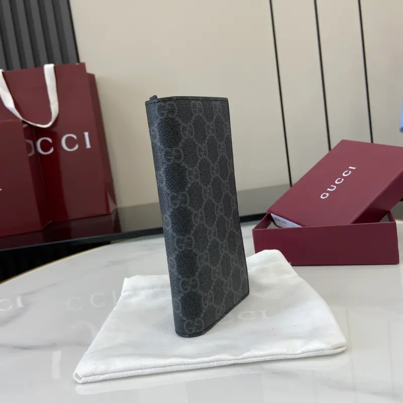 ??Comes with a full set of original red box packaging????New product?? The GG Emblem series reinterprets the classic pattern with creative design and innovative functions, and is ingeniously created to be a collectible choice for years to come. This long wallet is ingeniously crafted with the new black GG monogram pattern fabric, reinterpreting the new accessories series. It has multiple card compartments and other multifunctional compartments. Black new GG monogram pattern coated fabric blue leather lining Interior: sixteen card compartments, one zipper pocket and three open pockets Weight: approximately 148 grams Model: 821213. Dimensions when closed: 10 cm (width) x 19 cm (height) x 2 cm (thickness); dimensions when open: 20.5 cm (width) x 19 cm (height) Color: crepe leather/original leather. Made in Italy