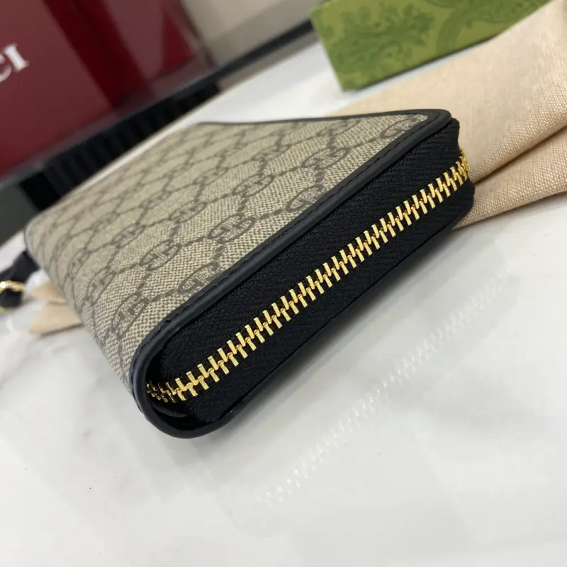 [Includes full original green box packaging] [New] GG Emblem. The new GG Emblem collection reinterprets the brand’s timeless elegance and exquisite craftsmanship. This beige and dark brown mini wallet is a fresh take on the brand’s new small accessories collection, crafted from canvas with the new GG monogram. Carefully designed with multiple compartments and card slots, it cleverly incorporates a practical snap closure. Model: 821803. Dimensions: 19 (length) x 10 (width) x 2.5 (thickness). Color: Brown PVC leather/original leather. Made in Italy.