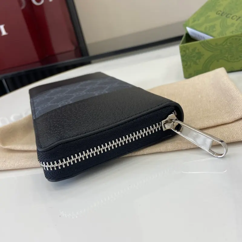 [New] Gbag’s latest GG Supreme PVC and pig-grained leather wallet. Model: 821803. Dimensions: 19cm (length) x 10cm (width) x 2.5cm (thickness). Color: black. Made in Italy.