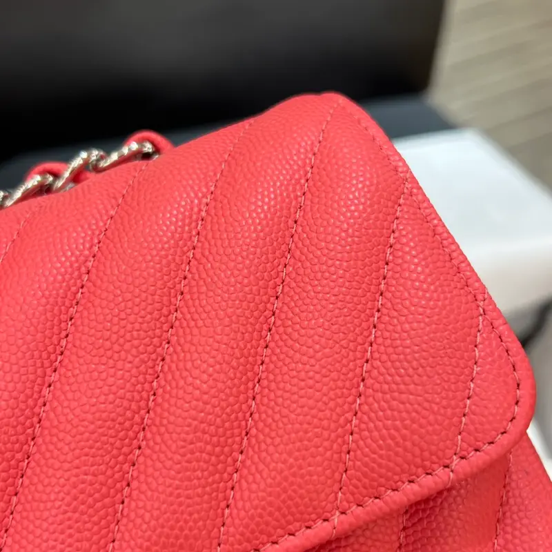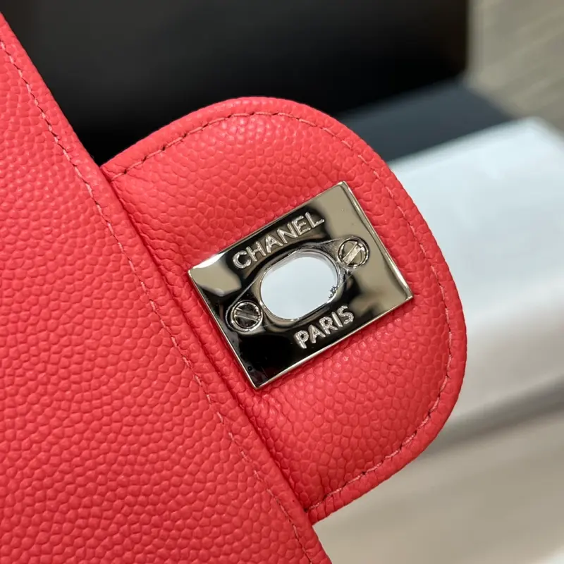 CF-Large Mini 20cm-Fine Spherical Caviar Leather-V-Grained Edge-Red Silver Buckle
