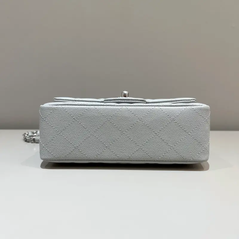 CF-Large Mini 20cm-Fine Spherical Caviar Leather-Elephant Gray Silver Buckle