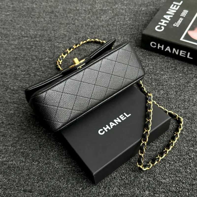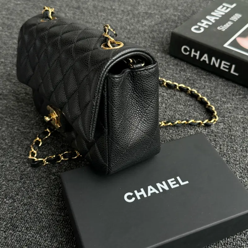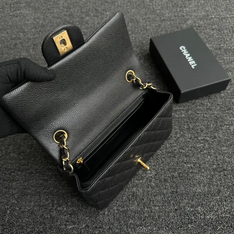 CF-Large Mini 20cm-Caviar Cowhide-Black Gold