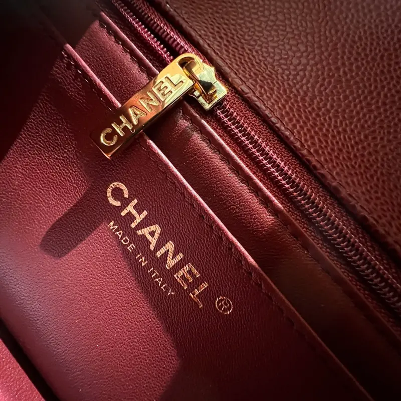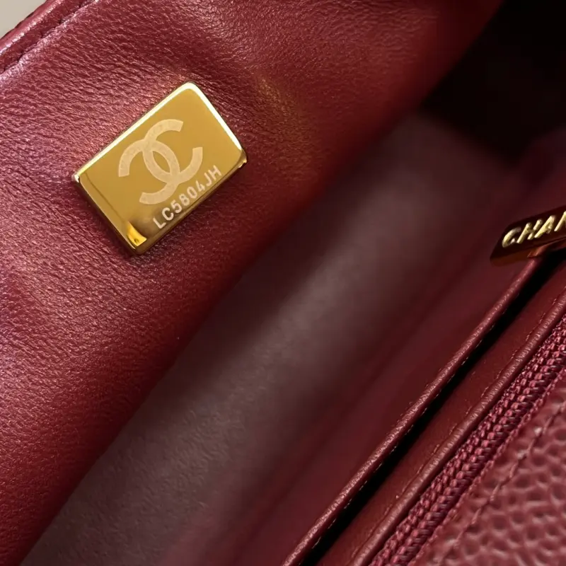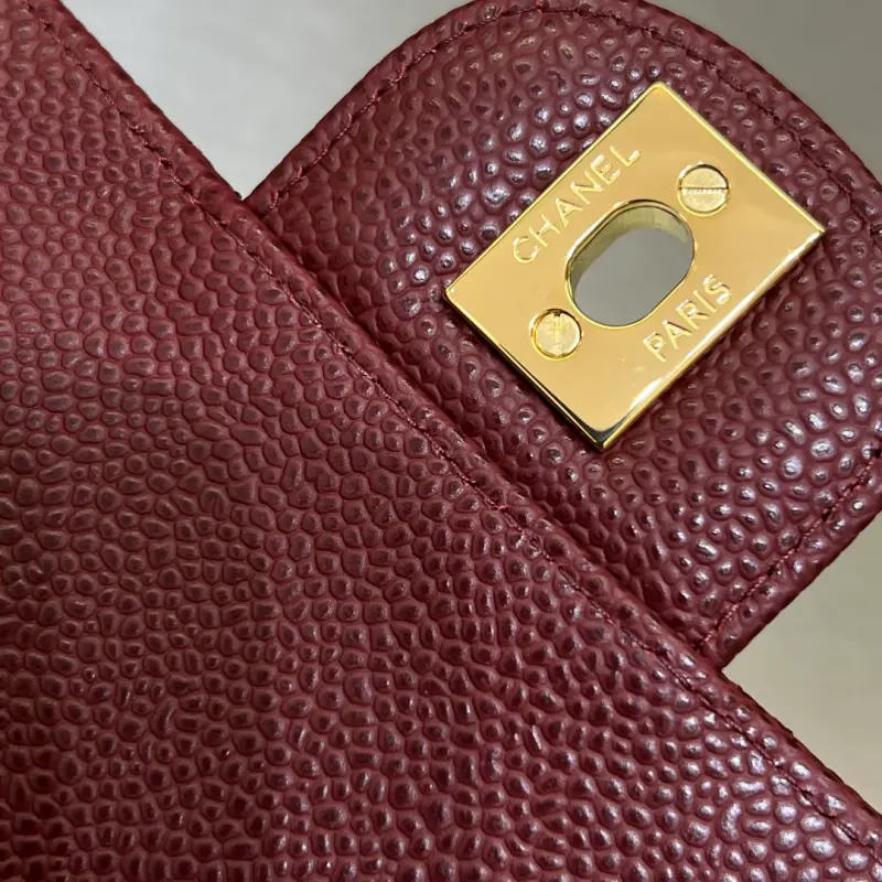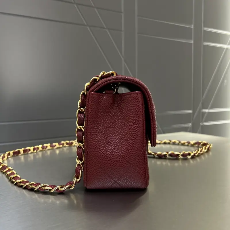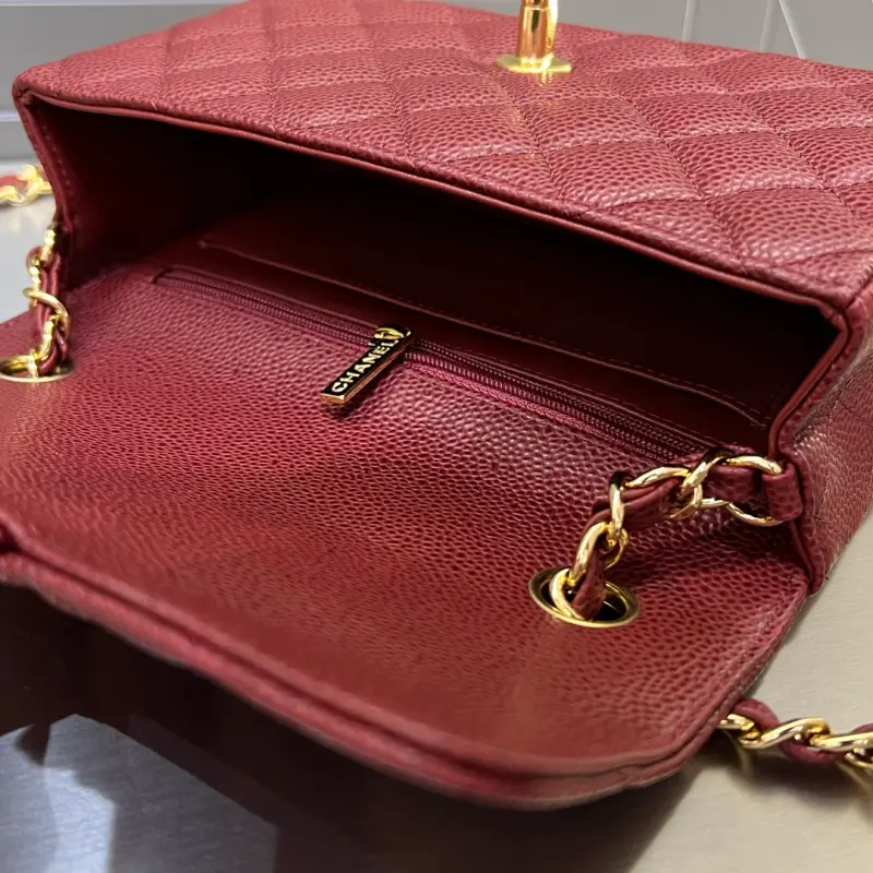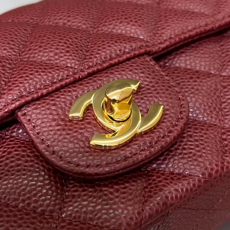 CF-Large Mini 20cm-Caviar Cowhide-Car Edge-Wine Red Gold