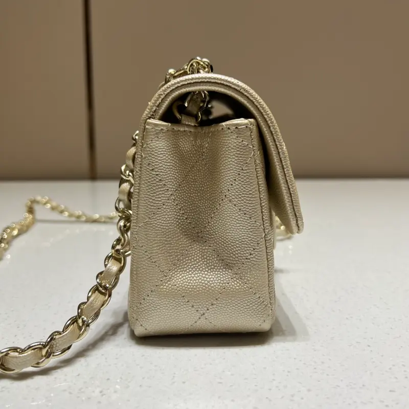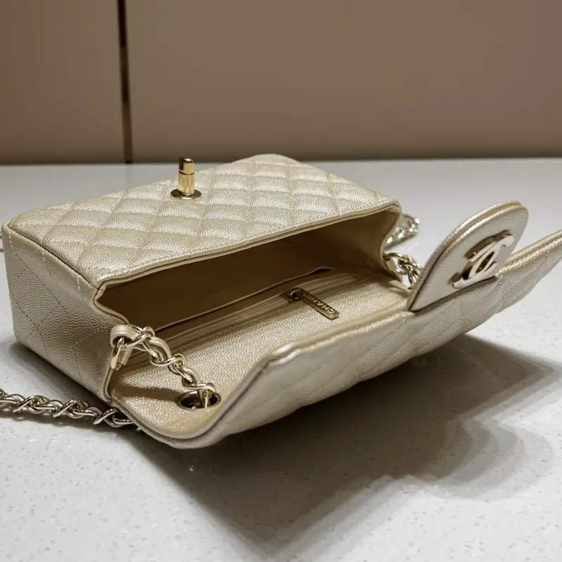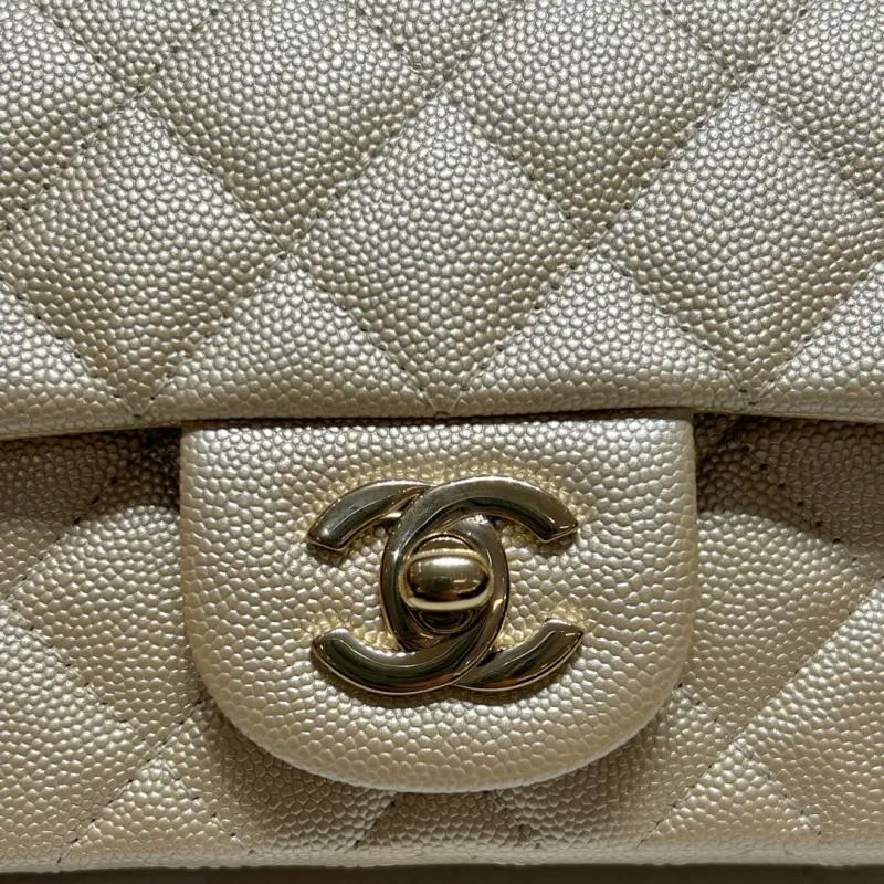 CF-Large Mini 20cm-Fine Spherical Caviar Leather-Champagne Gold Light Gold Buckle