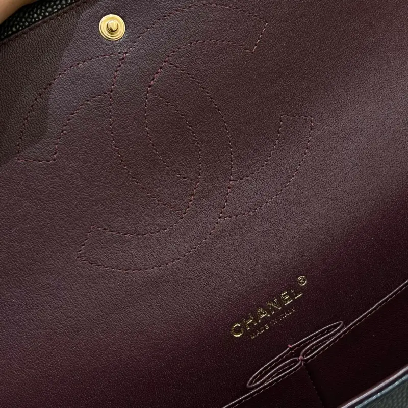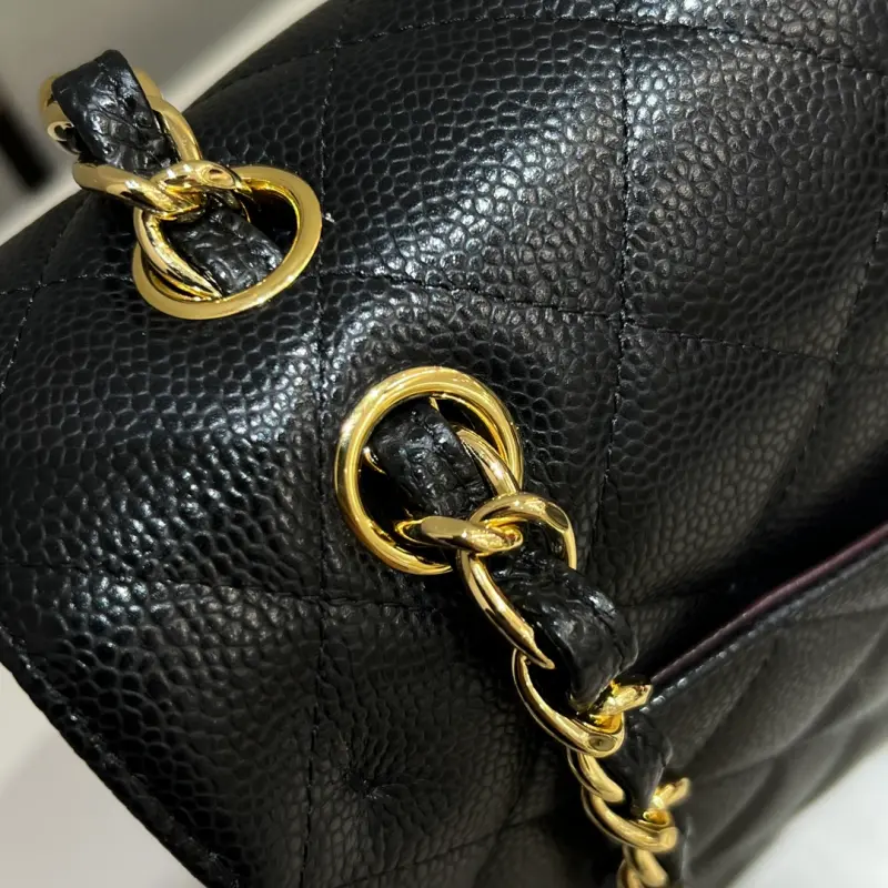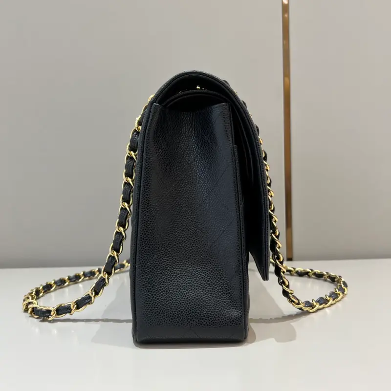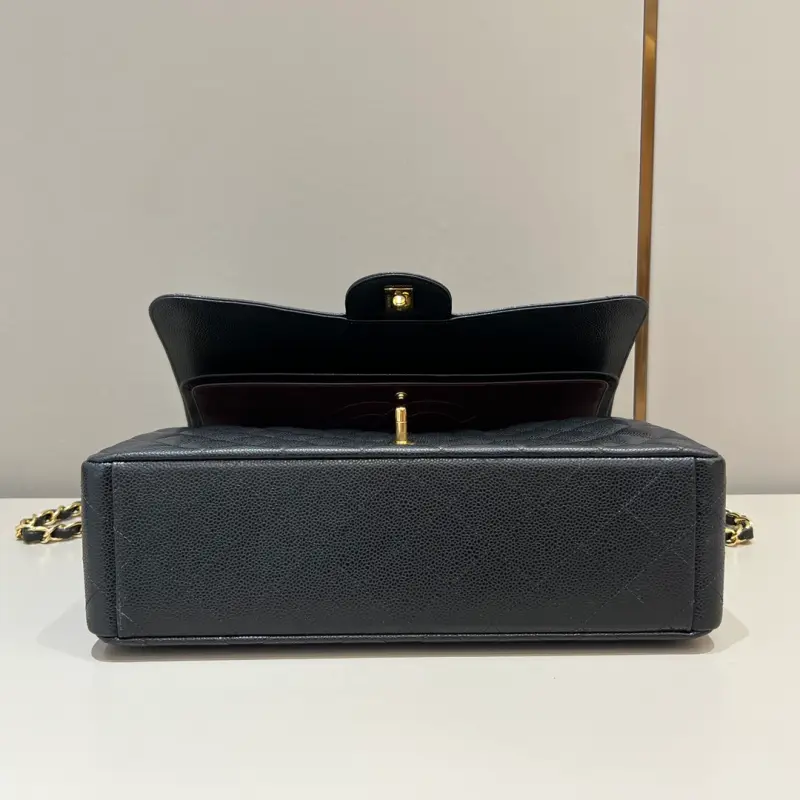 CF-Maxi 33cm – Caviar Leather – Black with Gold Buckle. This is the largest CF bag with an amazing capacity. It’s a very handsome bag. This is a unisex model that can be carried by both men and women. Dimensions: 33x23x10cm