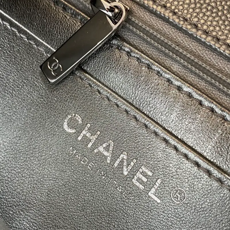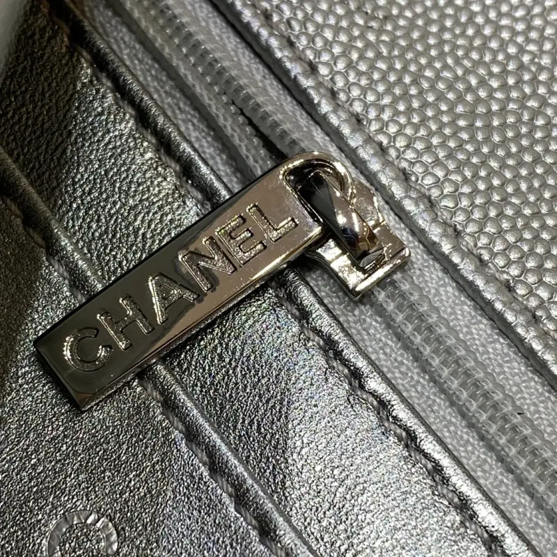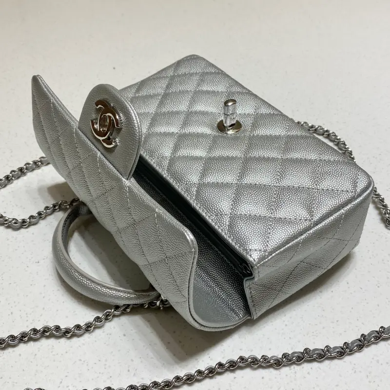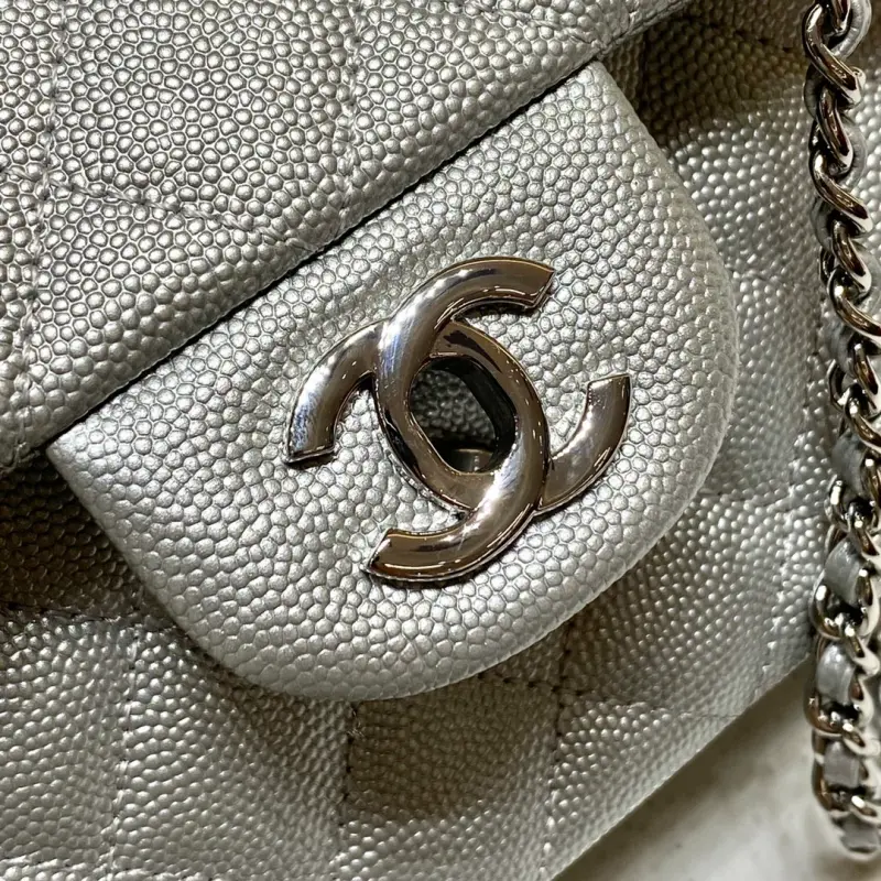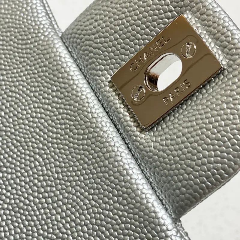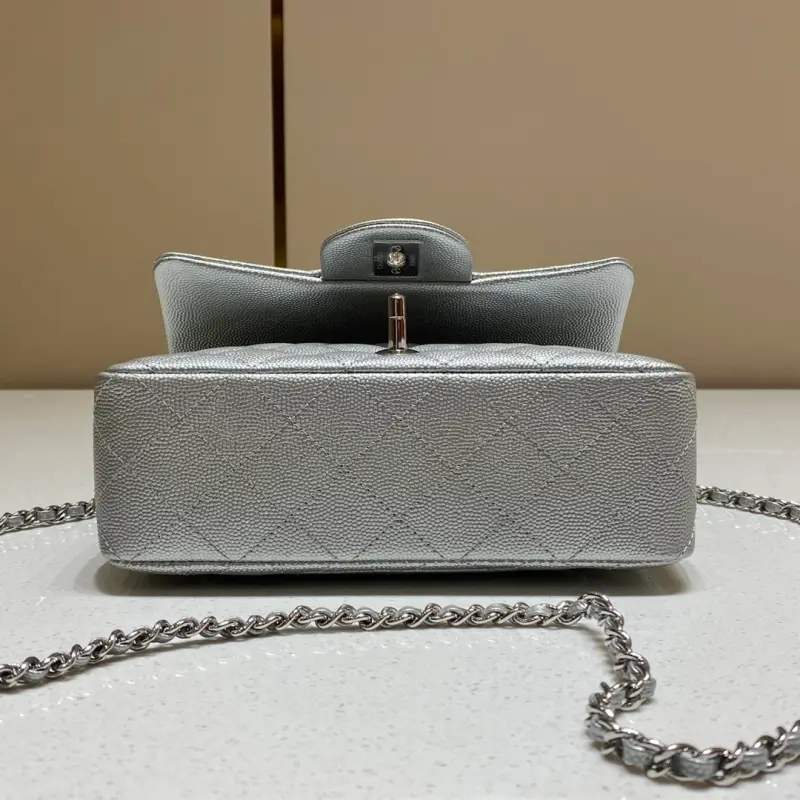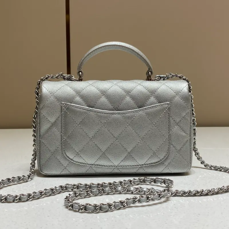 CF Mini Handle Silver caviar leather with silver buckle is absolutely stunning! Size: 13x20x9cm