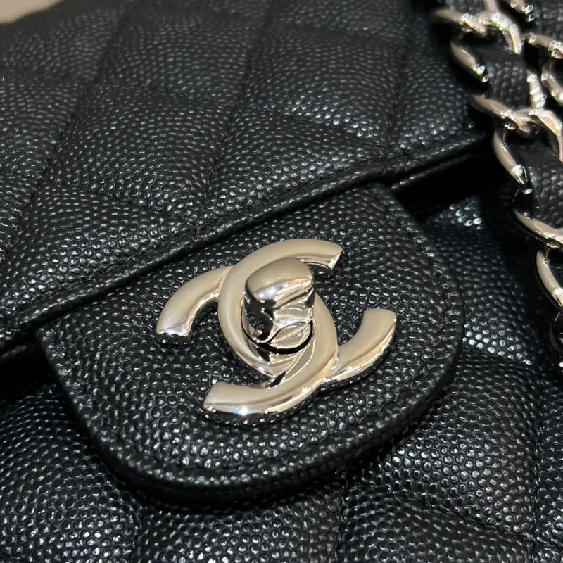 CF-Medium 25cm-Fine Caviar Leather-Champagne Gold Buckle