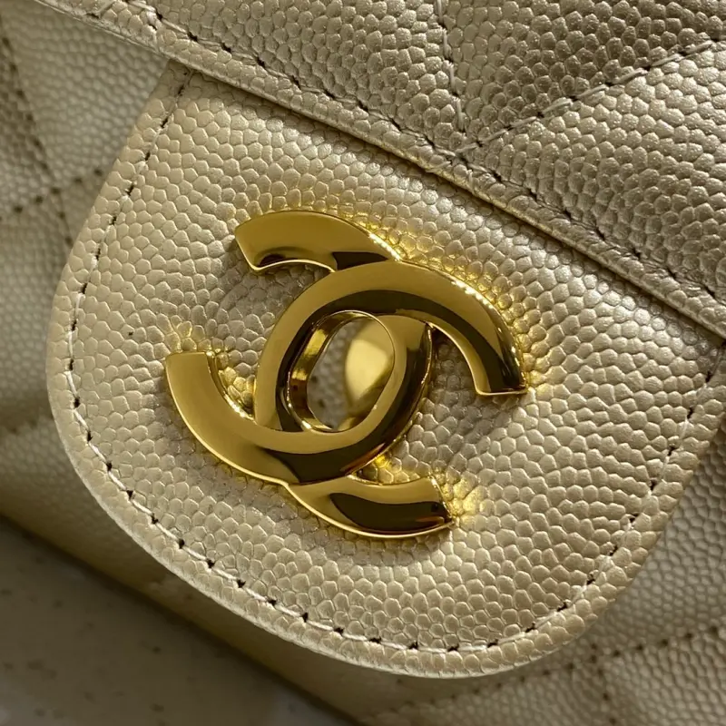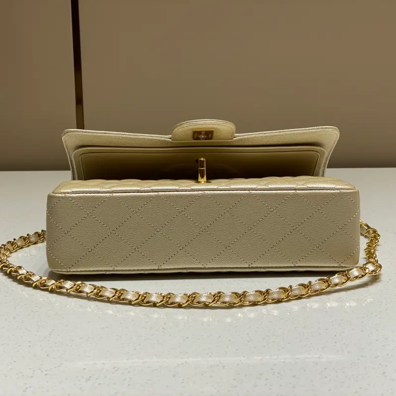 CF-Medium 25cm-Fine Caviar Leather-Champagne Gold Buckle