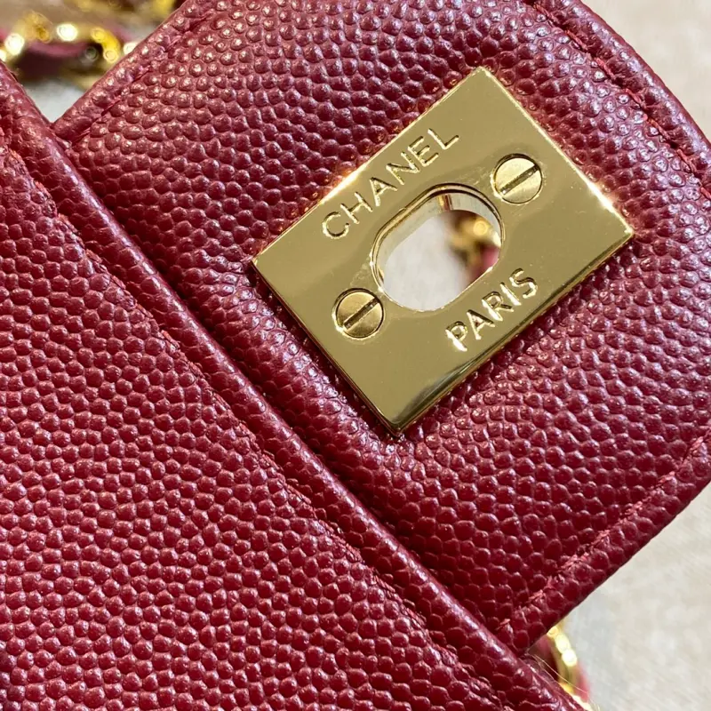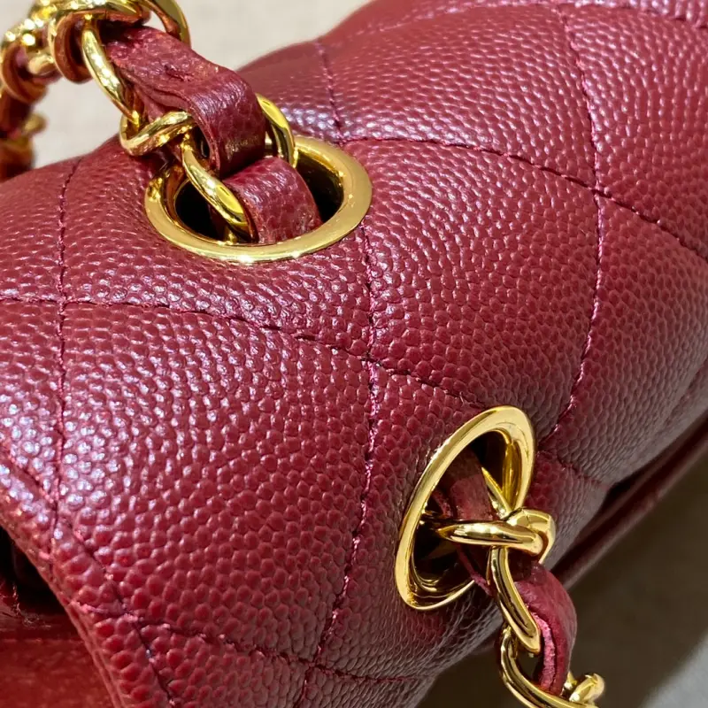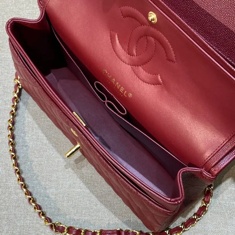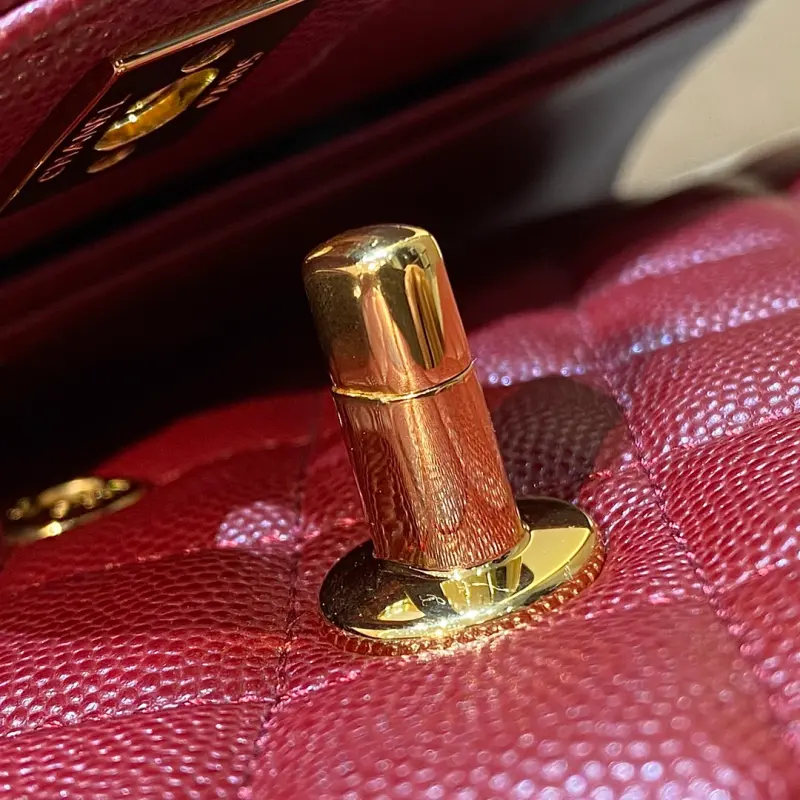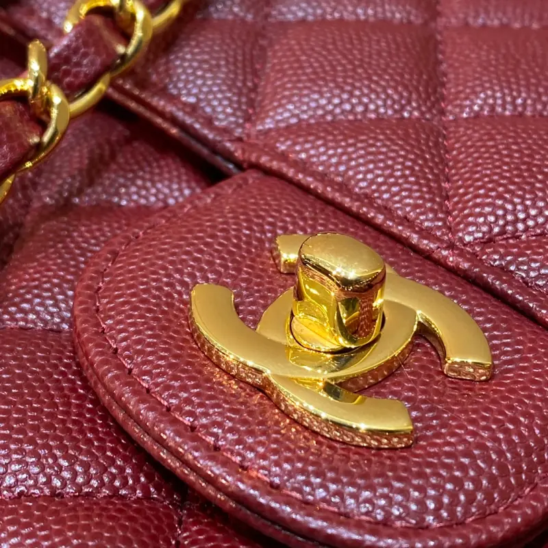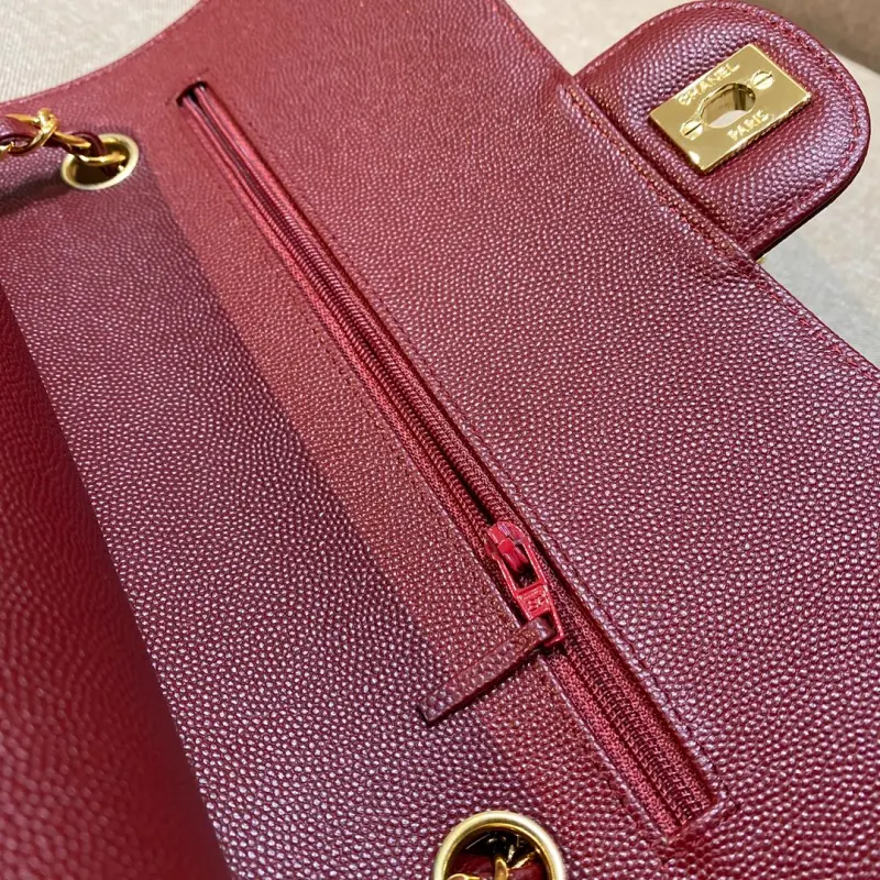 CF-Medium 25cm-Fine Spherical Caviar Leather-Wine Red Gold Buckle