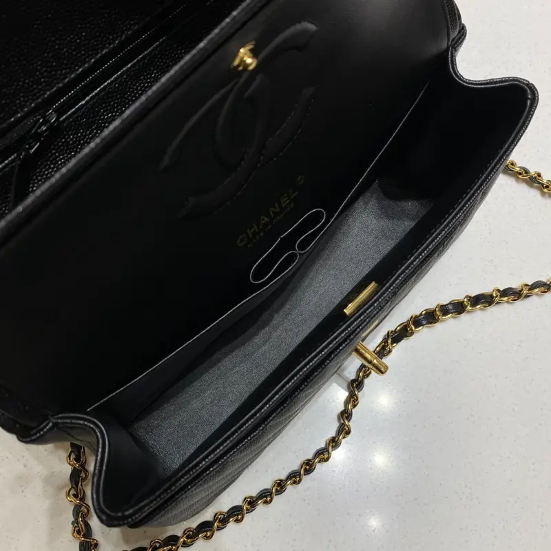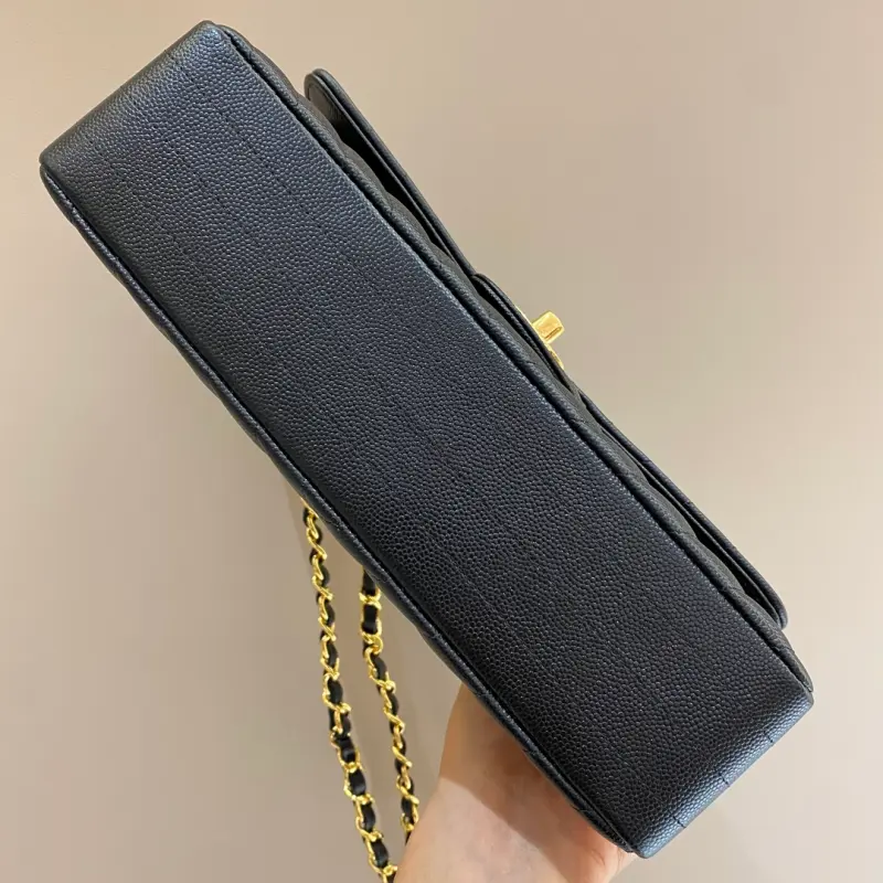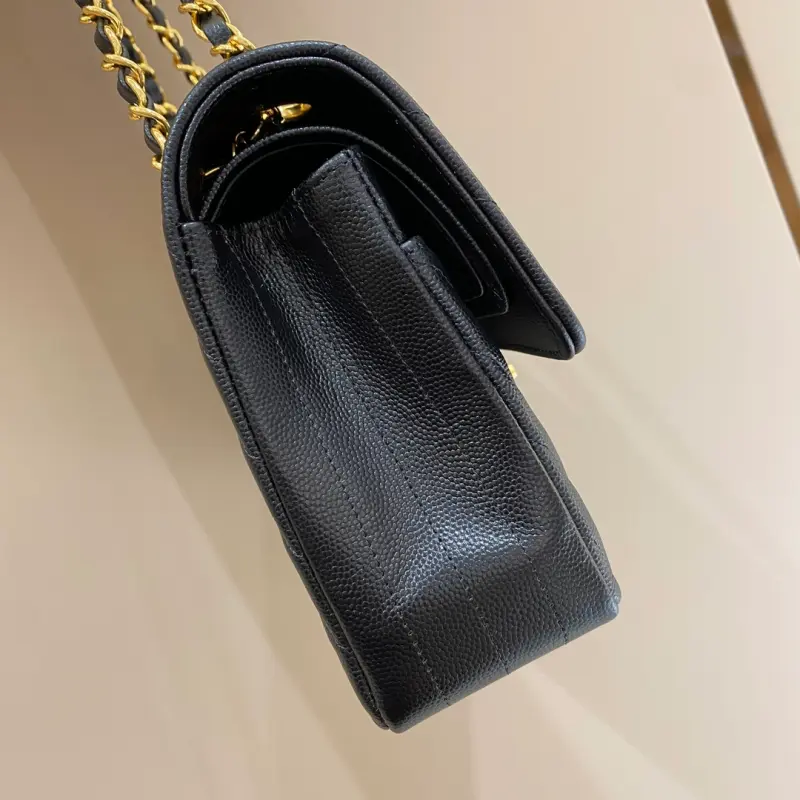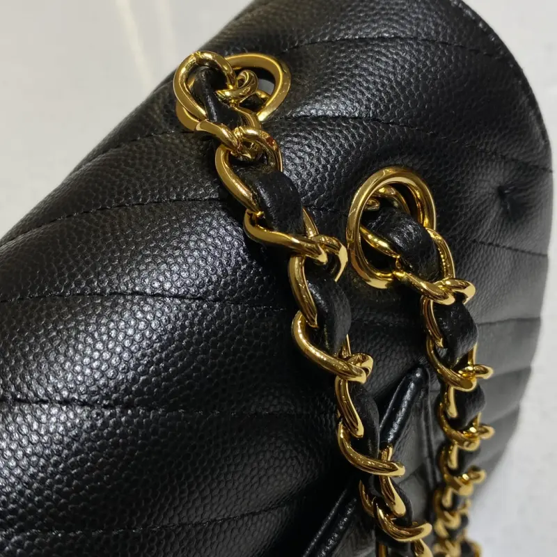 CF-Medium 25cm-V-grain fine ball caviar leather-V-grain black gold buckle