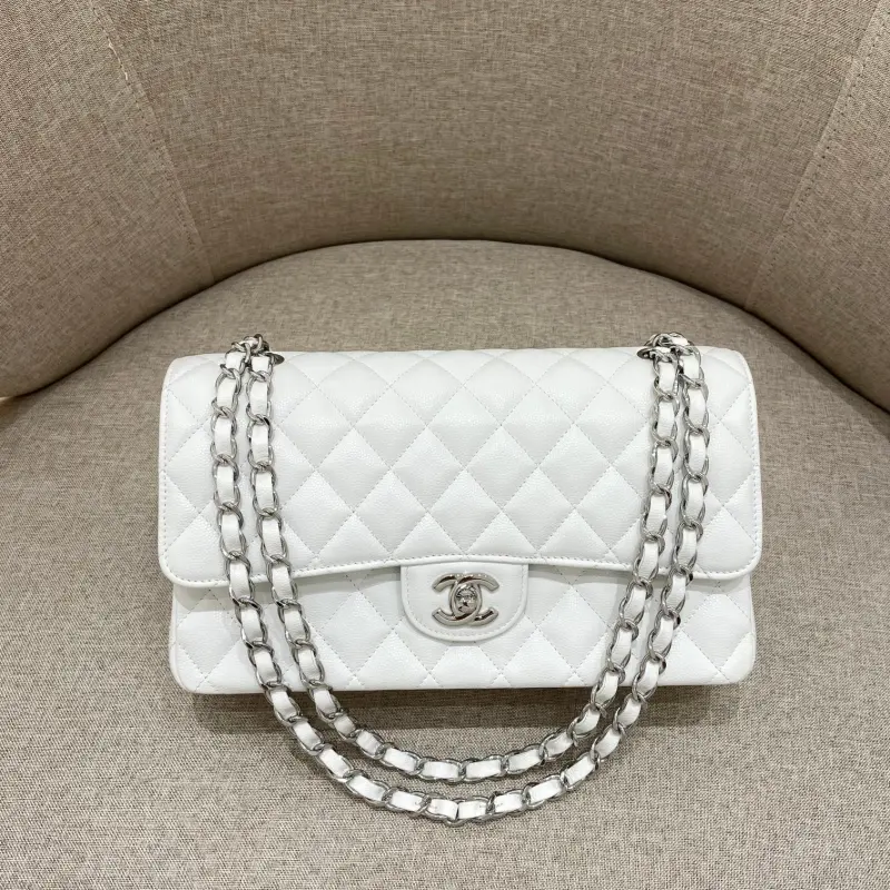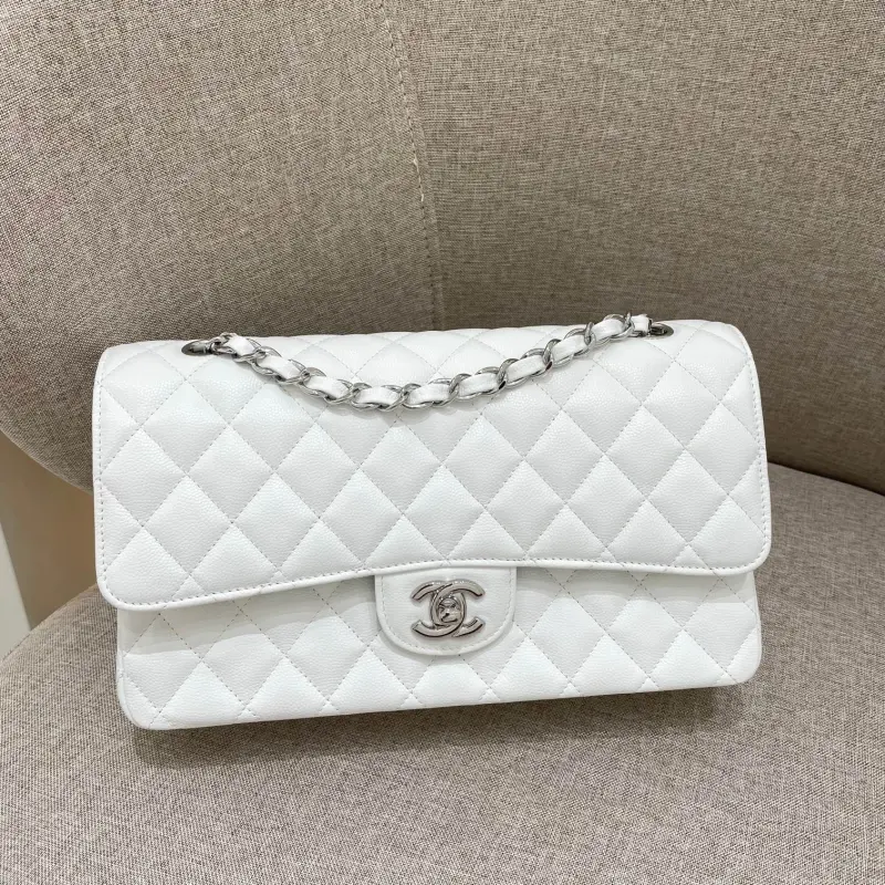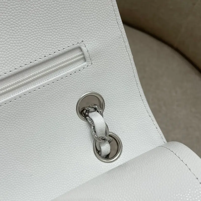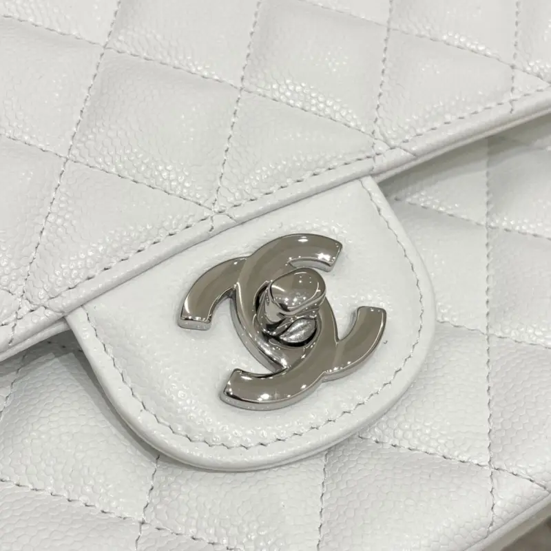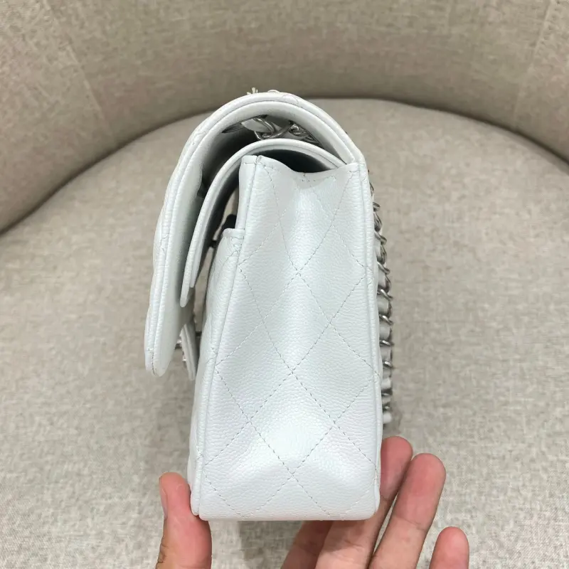 CF-Medium 25cm-Fine Spherical Caviar Leather-Carved Edge-Pure Silver Buckle