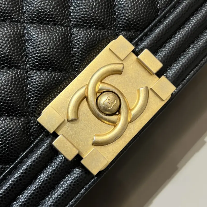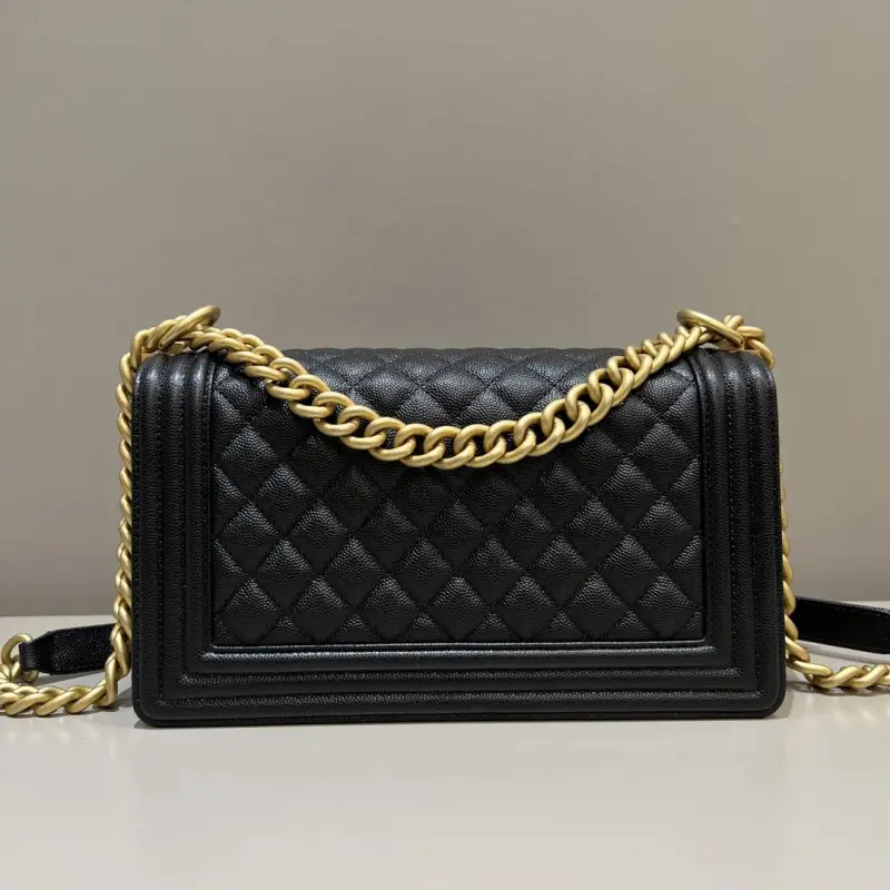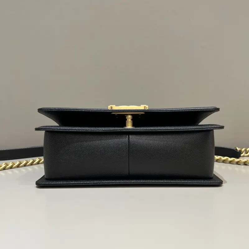 Leboy-Medium 25cm-Fine Caviar Cowhide-Black Nostalgic Gold Buckle