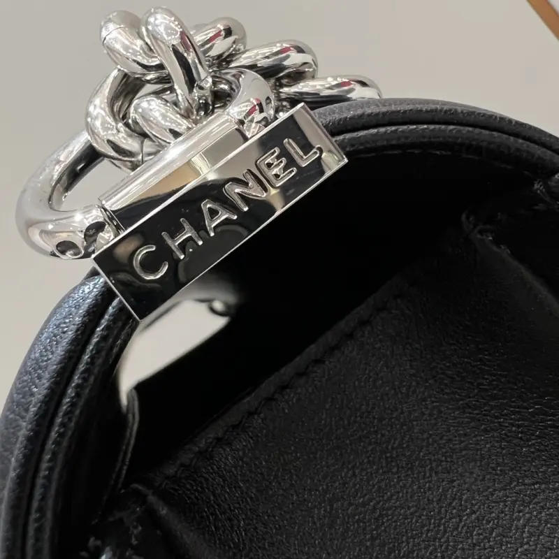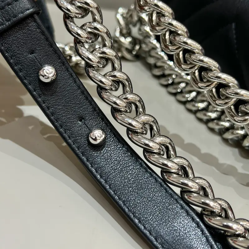 Leboy-Small 20cm-Big V Fetal Cowhide Black Bright Silver Buckle