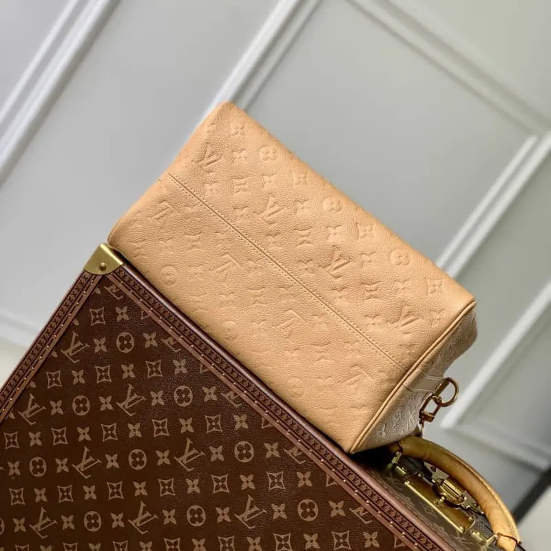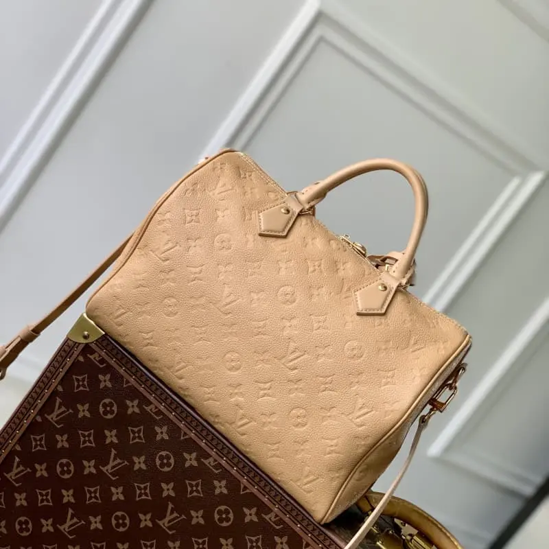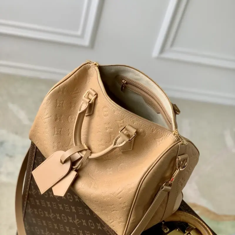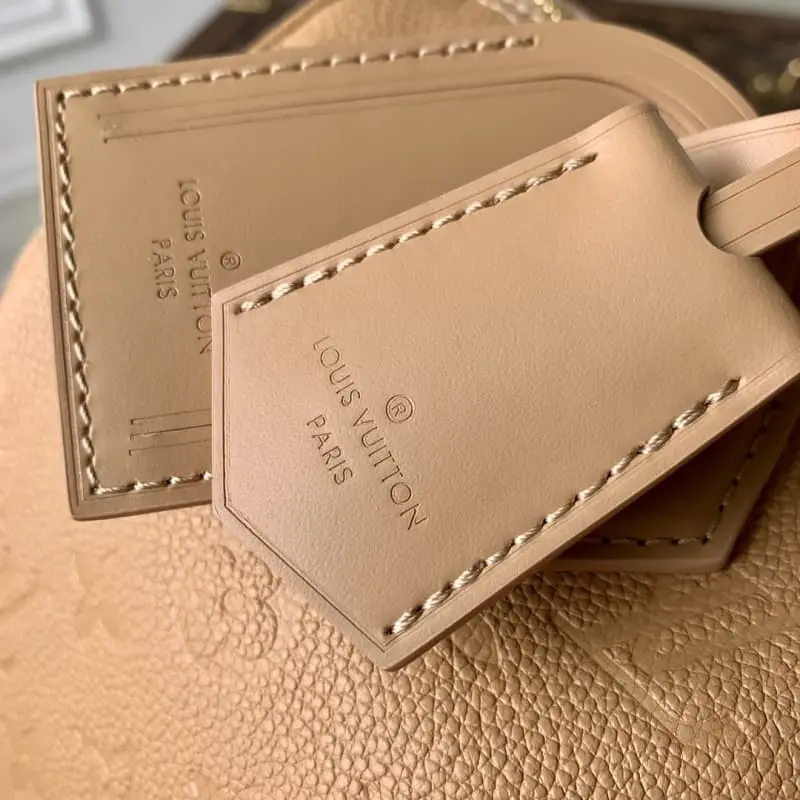 M11323 Apricot (full leather) This Speedy Soft 30 handbag renews the classic design of the Speedy handbag with Monogram Empreinte leather and suede cow leather lining to create a light and soft configuration. Whether it is hand-held, cross-body or shoulder-carried, it can create a trendy look. Size: 21 x 17 x30 cm (length x height x width)