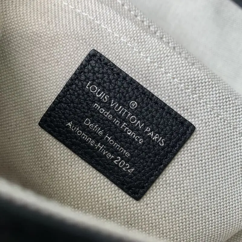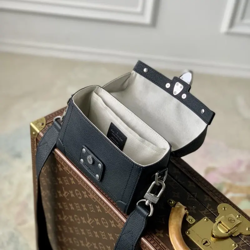 M11516 This Soul Trunk bag is crafted by Pharrell Williams with a grainy texture in supple LV Colorado cowhide. The Tumbler magnetic clasp, rivets and top handle recall the classic hard case elements. The removable and adjustable shoulder strap completes the sophisticated details. 19 x 15 x 7 cm (length x height x width)