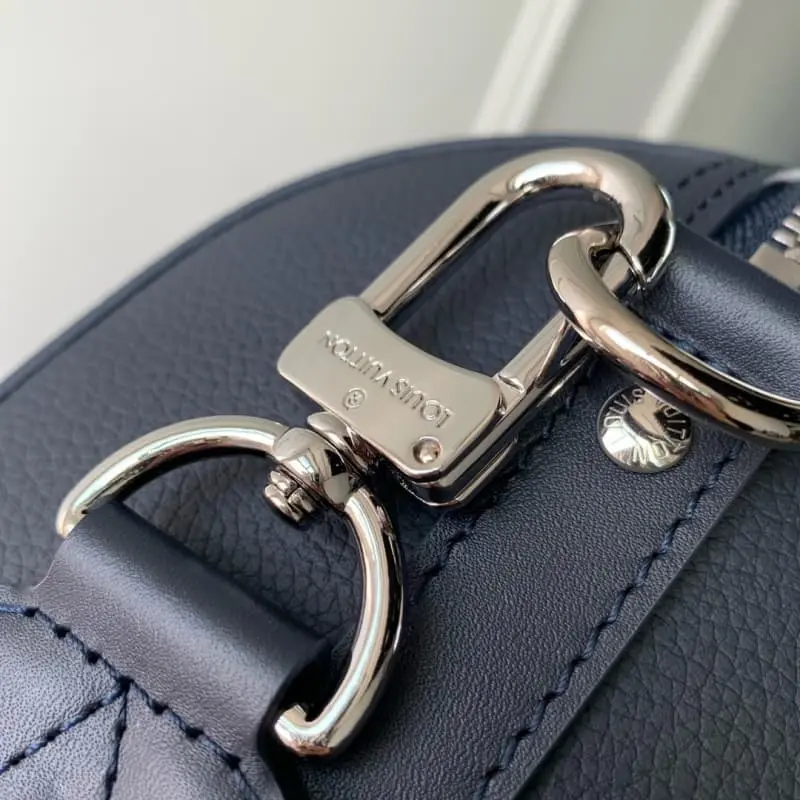 M11602 Dark Blue This City Keepall is made of LV Aerogram leather with metal LV letters. It can be carried on the shoulder or across the body with a detachable and adjustable shoulder strap. The Keepall’s iconic side straps and the Aerogram series’ eye-catching branding add to the brand’s style. 17 x 13 x 27 cm (height x width x length)