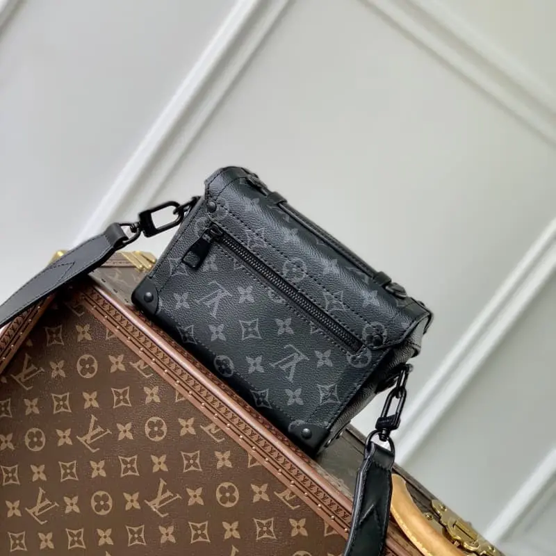 M11743 This Soul Trunk bag is made of Monogram Eclipse canvas with a soft and compact shape for comfortable crossbody wear. Reinforced corners, leather details and Tumbler lock highlight the series identity. 19 x 15 x 7 cm (length x height x width)