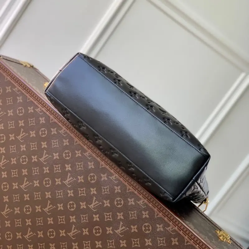 M12068 Black Complementing the Coussin collection, this new Hobo model strikes a balance between style and functionality. It showcases the collection’s signature design details, crafted from smooth padded leather, embellished with the brand’s monogram and finished with the signature thick chain with gold hardware. The large, detachable fabric strap offers a variety of wearing options. This versatile piece also includes a detachable zip pocket that’s perfect for storing a laptop. 38 x 33 x 10cm (length x height x width)