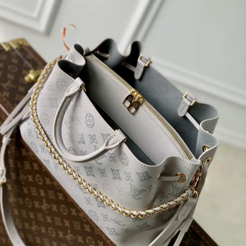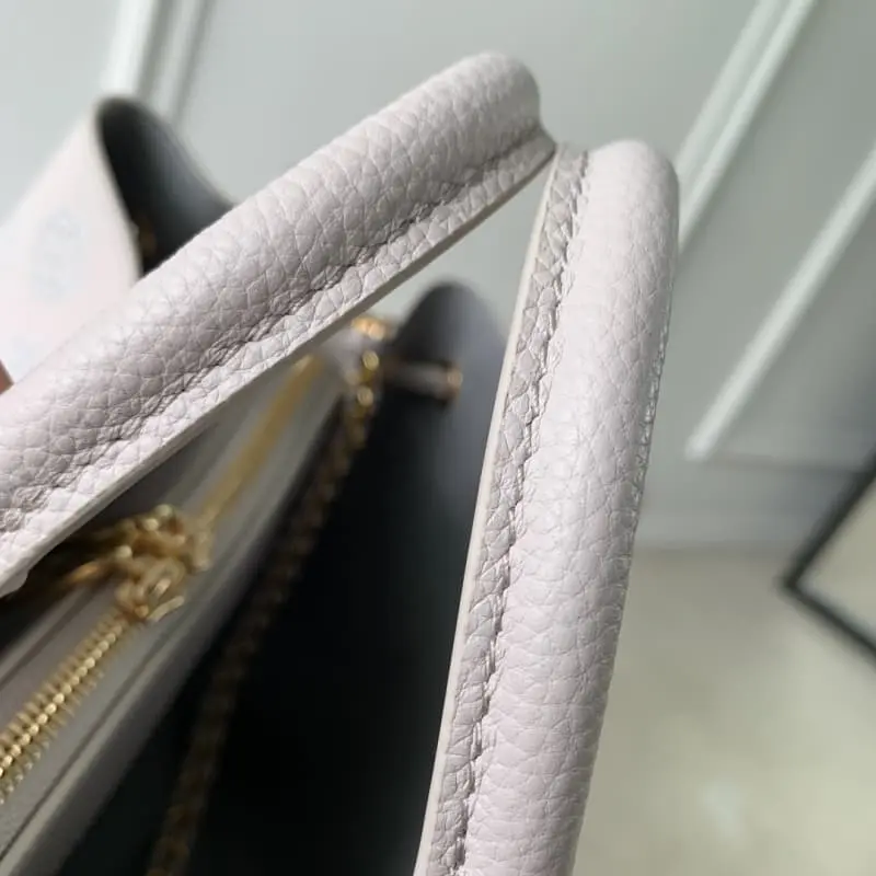 M12127 This Bella Tote handbag is made of perforated leather with a gradient effect for the new season, which cleverly echoes the brand’s Degrad?? ready-to-wear series prints and is paired with a detachable metal chain. The spacious space and zippered inner pocket are convenient for storing daily necessities and valuables, making it a great choice for winter. 23 x 13 x 32 cm (height x width x length)