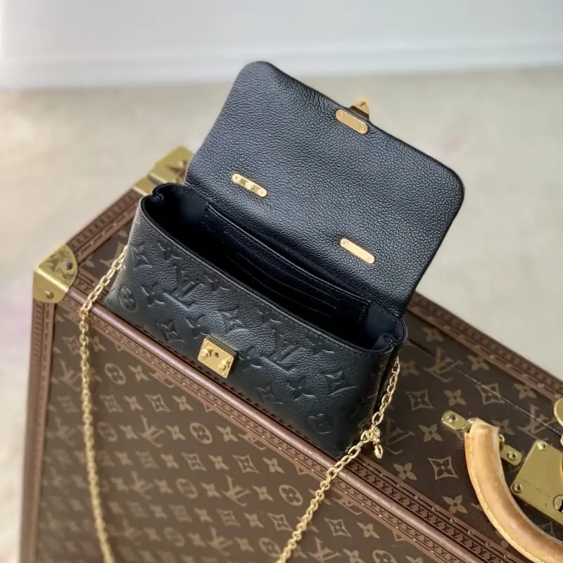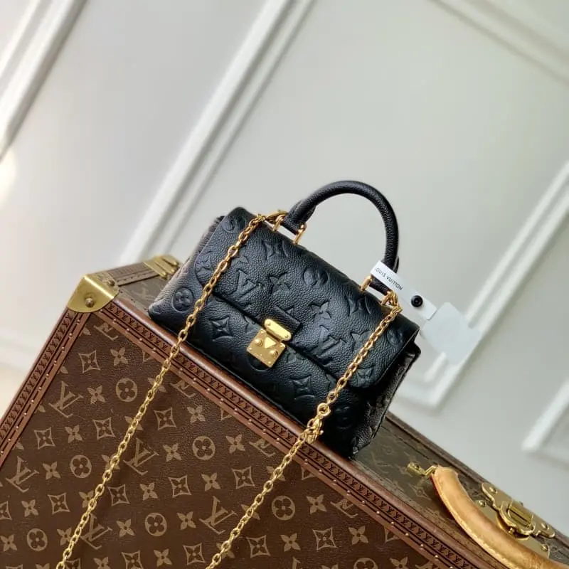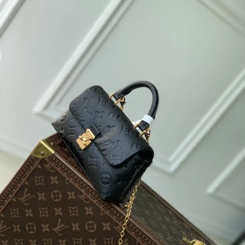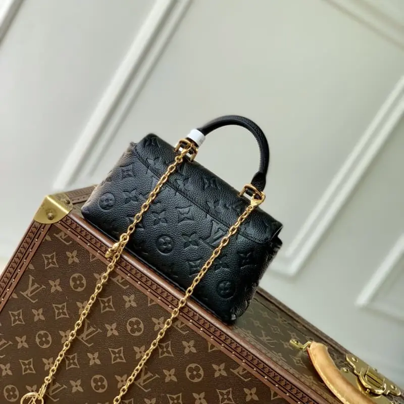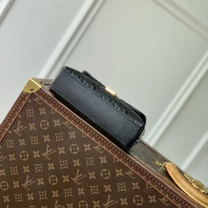 M12144 Black This Nano Madeleine bag is a miniature version of the Madeleine bag in Monogram Empreinte leather with a classic S-lock clasp and a removable chain with the LV Circle logo. It has plenty of space for daily carry, shoulder or crossbody. 12.5 x 6 x 21 cm (H x W x L)