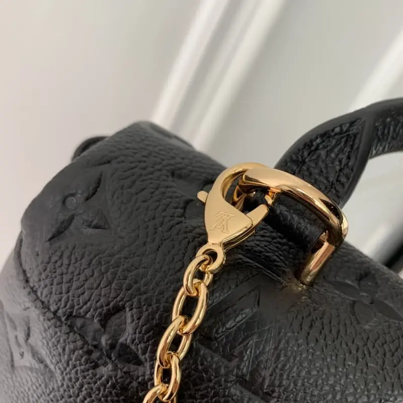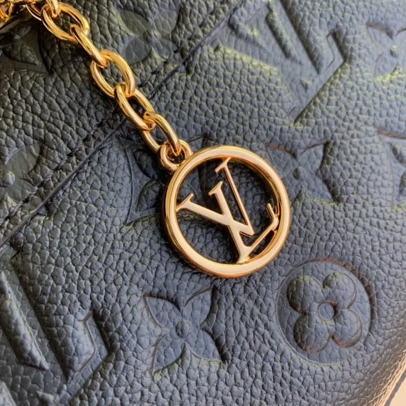 The M12144 black Nano Madeleine handbag joins the LV Ski series with a sparkling style. It is made of Monogram Empreinte leather with an elegant new color and paired with the classic S-lock clasp. The metal chain embellished with imitation crystals can be easily converted into crossbody, shoulder or hand-carrying methods. 12.5 x 6 x 21 cm (height x width x length)