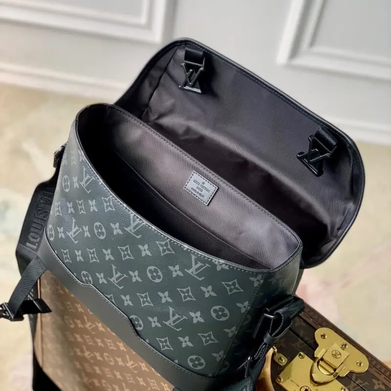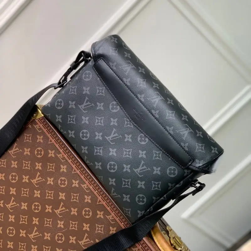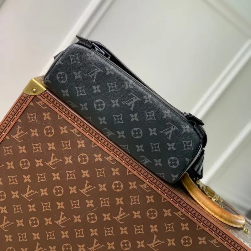 M12517 Black Flower This Voyager Small Messenger Bag is made of Monogram Eclipse canvas to create a comfortable and portable configuration that can easily accommodate a tablet, charger and other daily necessities. The quick-release buckle presents the LV letters and the adjustable shoulder strap can be carried on the shoulder or crossbody. 22.5 x 11 x 33 cm (height x width x length)
