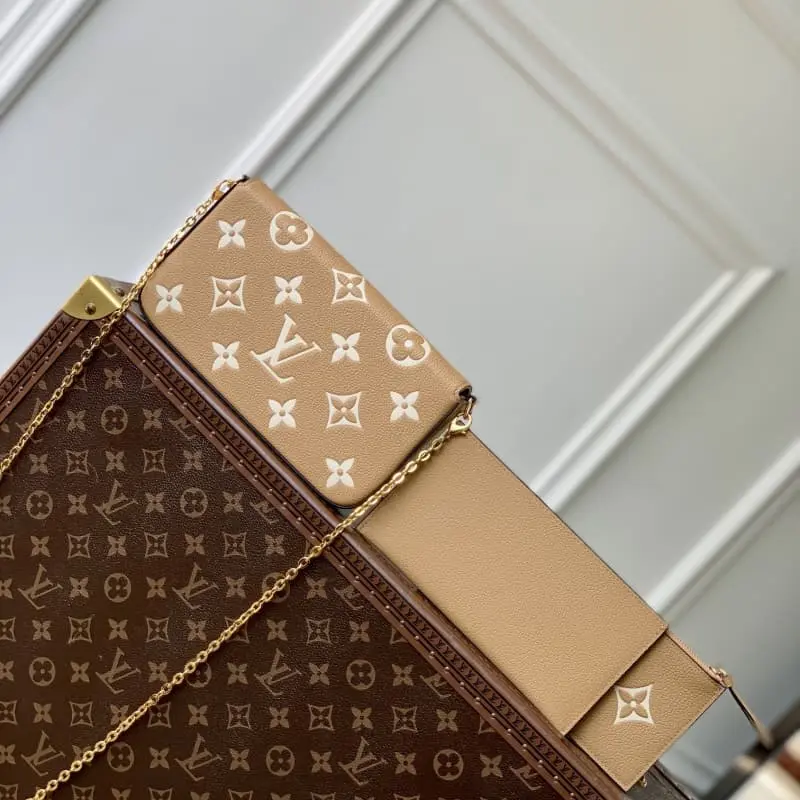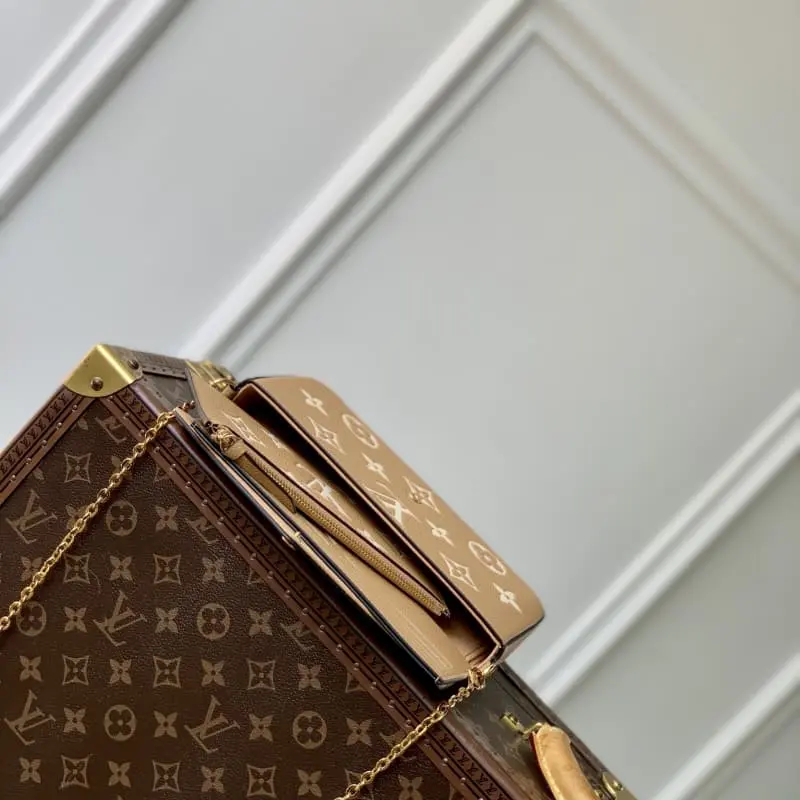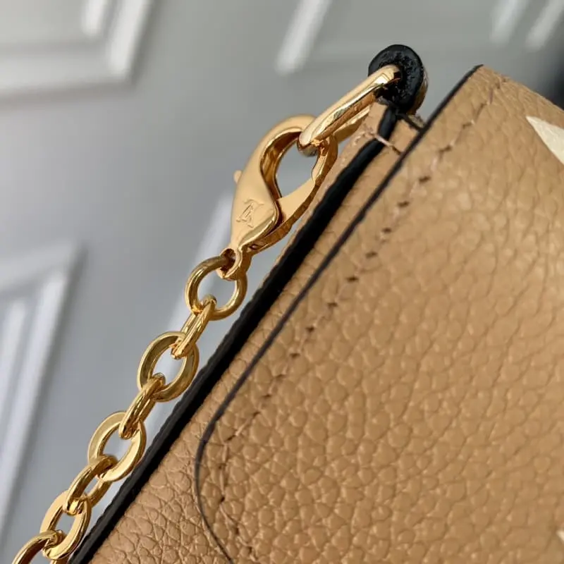 M12754 Silkscreen POCHETTE FELICIE Handbag Elegant and compact, with two removable pockets, it is a stylish choice for carrying and organizing your daily necessities. It is not just a wallet. After removing the gold chain, it can also be used as a charming clutch or small handbag. Dimensions: 21.0 x 11.0 x 2.0 cm