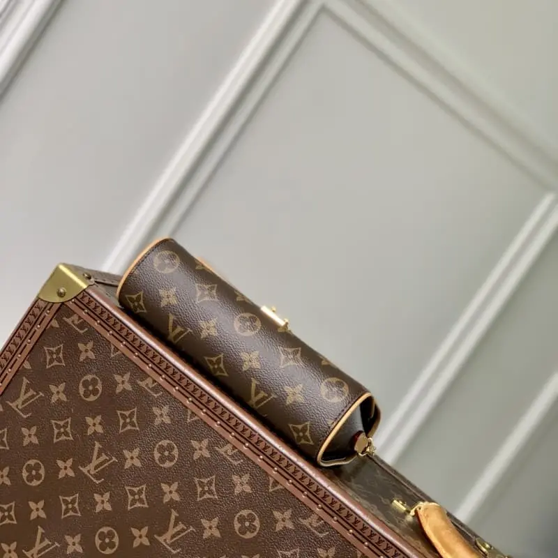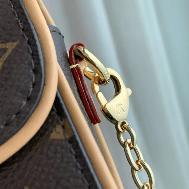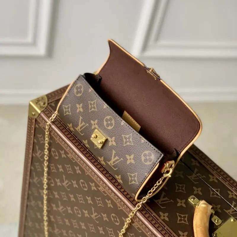 M13566 This Pochette Camille bag is made of Monogram canvas, a nod to the original design that debuted at the Lbag Spring/Summer 2000 fashion show. The S-Lock clasp, LV Circle logo on the chain and contrasting VVN leather trims represent the brand’s classic elements. The flexible and easy-to-wear configuration is suitable for crossbody, shoulder or hand-carrying. 11 x 6 x 20.5 cm (H x W x L)