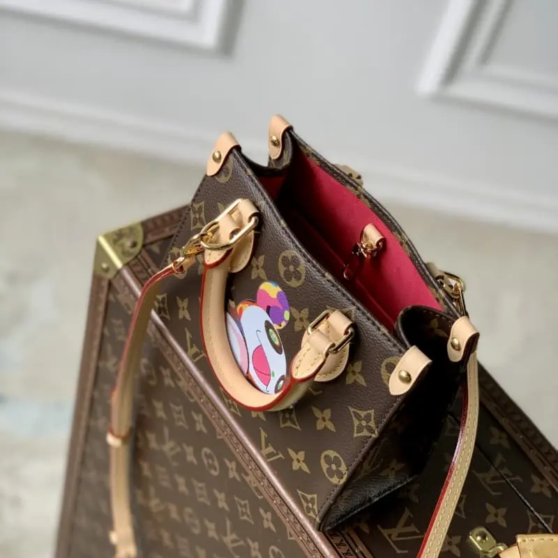 M13668 Lbag x Takashi Murakami re-edition series interprets the exquisite version of OnTheGo handbag with a playful touch. Monogram canvas and cowhide leather establish the brand’s classic style. The cute and lively panda image drawn by Takashi Murakami is transformed into the front and back prints. The removable and adjustable shoulder strap provides a variety of carrying options. The zippered inner patch pocket allows personal items to be carried safely. 15 x 8.5 x 18 cm (height x width x length)