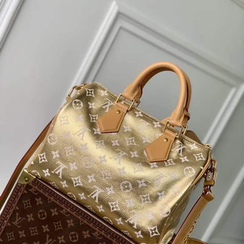 The M13904 gold Speedy P9 Bandouli??re 30 handbag is crafted from cowhide leather printed with the classic Monogram pattern and is perfectly sized: compact and light yet large enough to hold everyday needs. The handbags show exquisite craftsmanship in every detail, from the retro side locks to the luxurious sheepskin lining, every detail reflects the brand’s unremitting pursuit of quality. In addition to the top handle design, it is also equipped with a detachable shoulder strap to provide a variety of carrying methods. 22.5 x 18 x 32 (H x W x L)