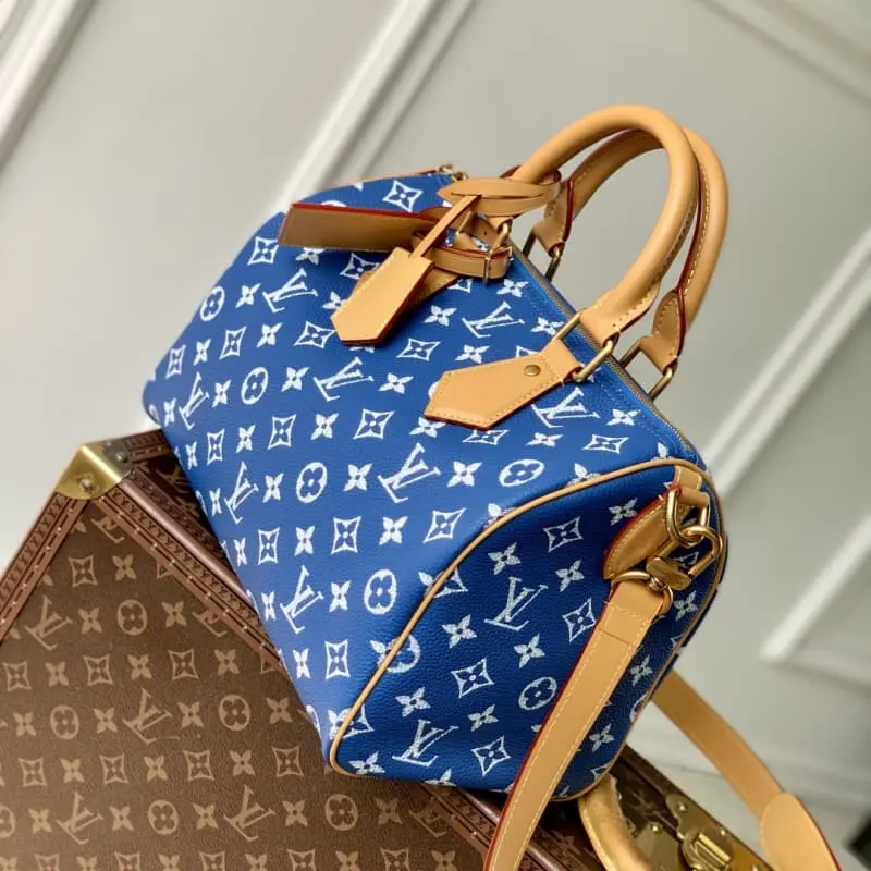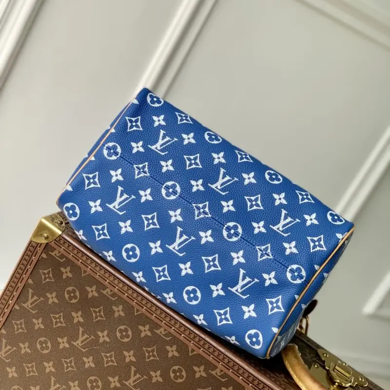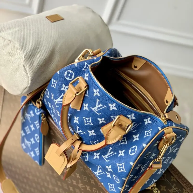 The M13904 blue Speedy P9 Bandouli??re 30 handbag is carefully crafted from cowhide leather printed with the classic Monogram pattern. The size design is just right: it is compact and light, but large enough to hold daily needs. The handbag is exquisitely crafted in every detail, from the vintage side locks to the luxurious sheepskin lining, every detail reflects the brand’s unremitting pursuit of quality. In addition to the top handle design, it is also equipped with a detachable shoulder strap to provide a variety of carrying methods. 22.5 x 18 x 32 cm (height x width x length)