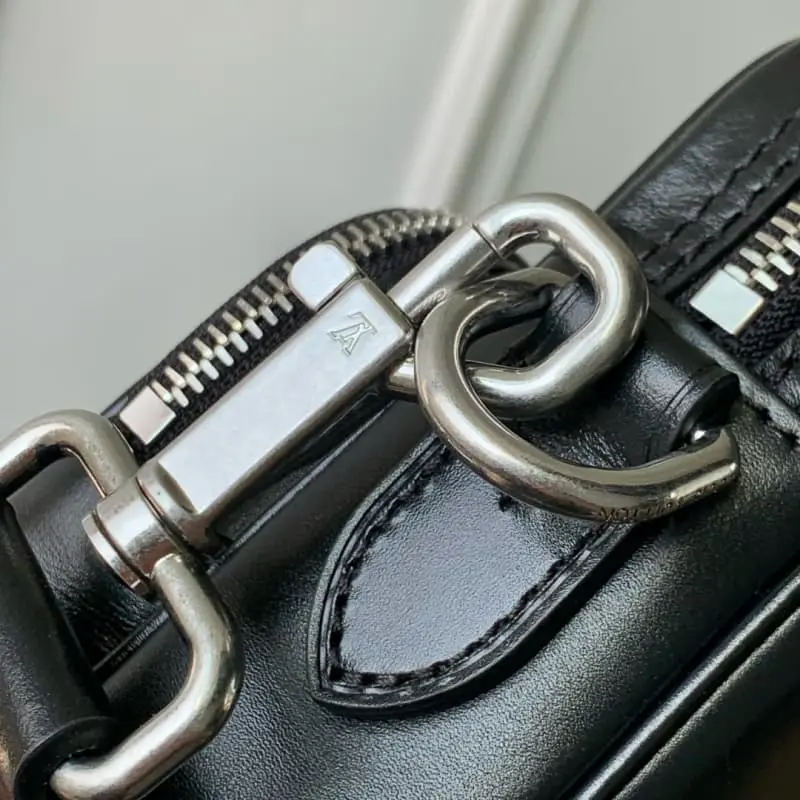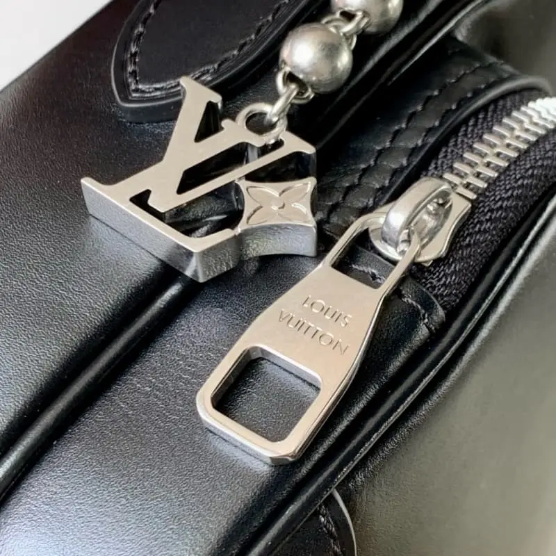 M13987 This Nil bag shines in the elegant luster of calfskin leather. The Lbag Paris patch is fixed to the front with beaded rivets. The side lock shows the urban style. The main compartment zipper pull is decorated with LV monograms. 17.5 x 11 x 25 cm (H x W x L)