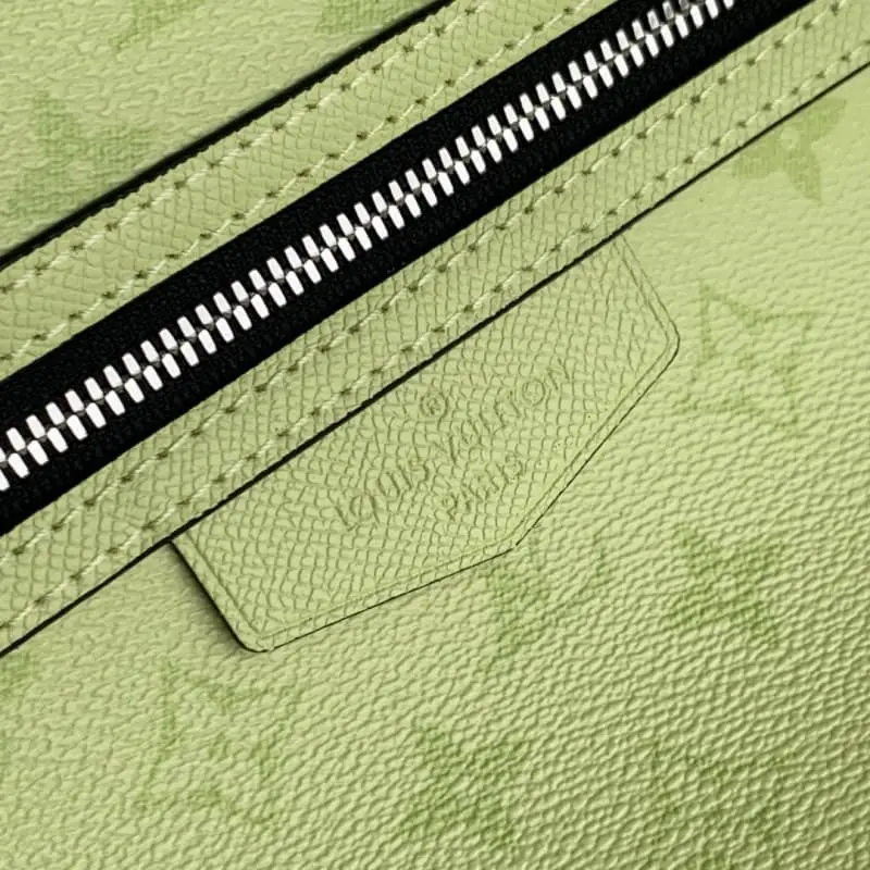 M14076 This Discovery Slim backpack combines Monogram canvas and Taga cowhide leather in summery tones to exude dynamic vitality. Fabric lining highlights sophisticated details. Internal patch pocket can store a 13-inch laptop. Adjustable padded fabric shoulder straps enhance the carrying experience. 38 x 13 x 28 cm (H x W x L)