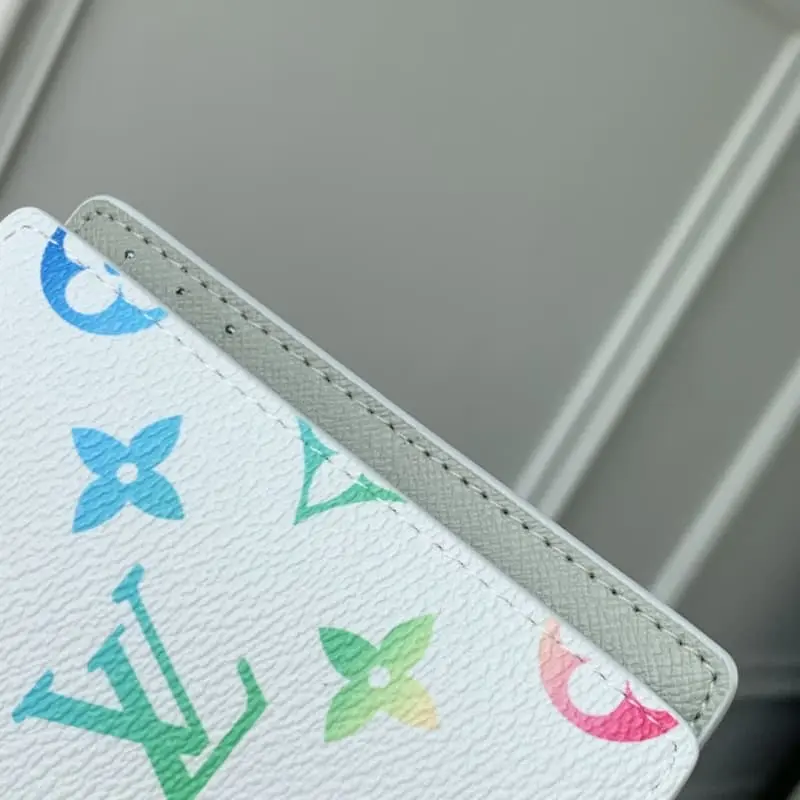 M14134 White Flower Pocket Card Holder, White Gradient! This pocket wallet is made of Monogram Macassar coated canvas with a bright color for the cowhide trim and neat interior. The compact structure has pockets, card slots and an outer pocket for credit cards and transportation cards. Dimensions: 7.5 x 11.1 x 1 cm