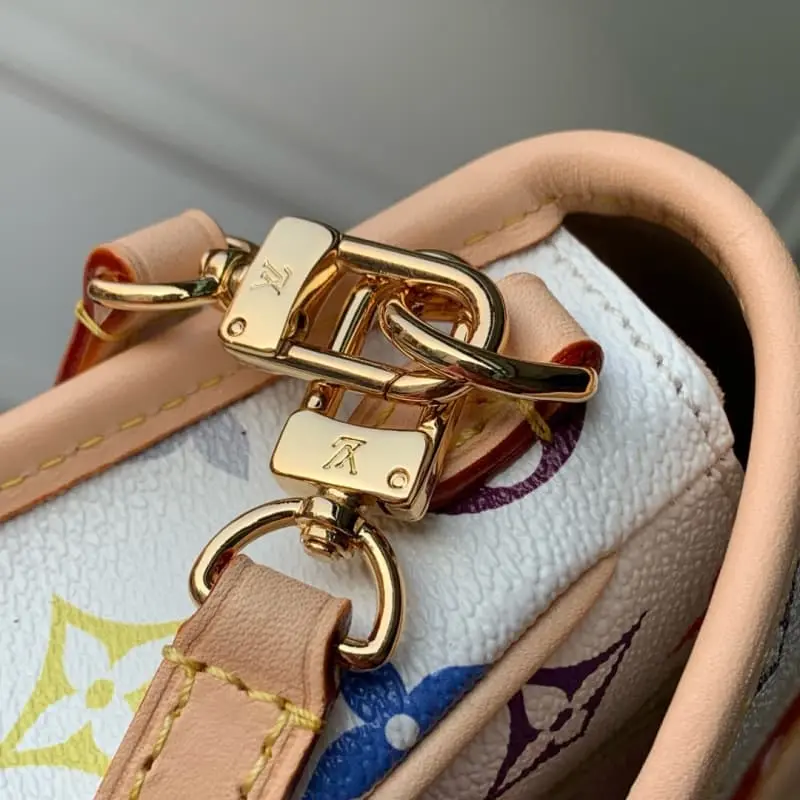 M14194 This Nano Diane handbag is from the Lbag x Takashi Murakami collaboration series. It is full of fun with colorful Monogram patterns. The dazzling metal parts and cowhide leather trim highlight the classic style. The removable and adjustable leather shoulder strap is convenient for crossbody. The exquisite structure can store mobile phones, short wallets and other daily necessities. 10.5 x 6 x 19 cm (height x width x length)