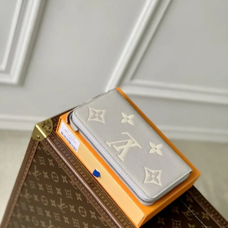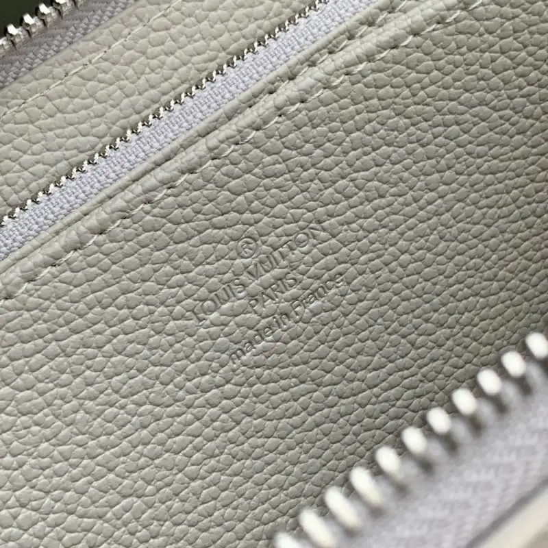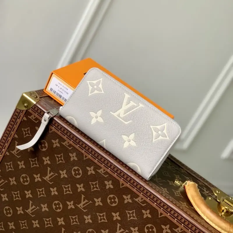 M14228 Taro Purple The iconic Zippy wallet is reinterpreted this season in a two-tone colorway perfect for any outfit. It’s made from Lbag’s Monogram Empreinte leather, embellished with silver-tone hardware and includes plenty of pockets and compartments to keep notes, cards and coins organized. The LV engraved zipper is a symbol of quality and tradition. 19.5??10.5??2.5cm (length x height x width)