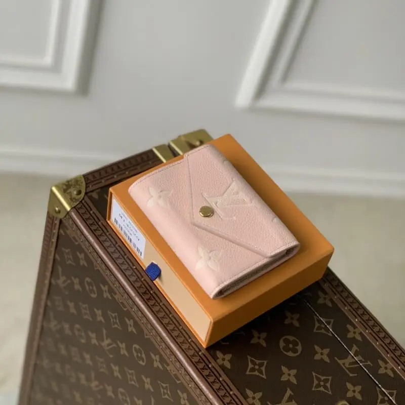 M14229 Pink Silkscreen This stylish Victorine wallet is reinterpreted in a two-tone design this season and is perfect for storing business cards and coins. The wallet is made of Monogram Empreinte leather and embellished with exquisite snaps and other gold metal parts. The interior space is neatly organized. When you open the wallet, you will immediately see multiple practical compartments for safely storing valuables and six business card compartments. 12 x 9.5 x 2.5 cm (length x height x width)