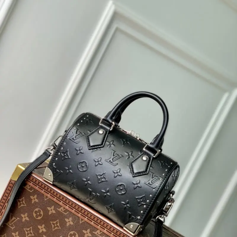 The M14575 Monogram Bold Speedy 20 Trunk handbag was dressed in Monogram canvas at the 2025 Cruise early spring show. This time, it is smooth Monogram embossed cowhide leather with shiny hardware and signature details such as padlocks, hardcase-style corners and removable braided chains. The inner patch pocket ensures that daily needs are neatly stored. 13.5 x 11 x 20.5 cm (H x W x L)