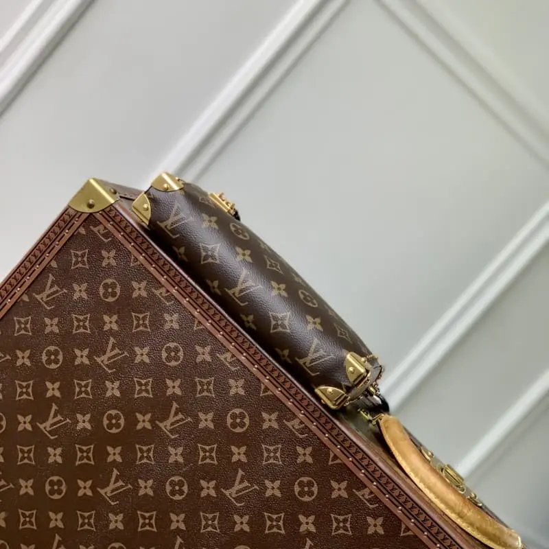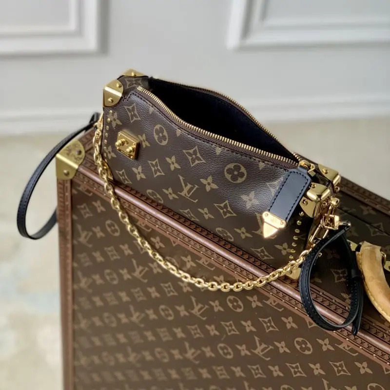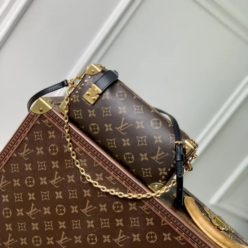 M20250 monogram This Slim Trunk handbag draws inspiration from Lbag’s traditional hard cases. The soft cowhide leather is combined with rivet frames and metal S-lock buckles to highlight the avant-garde rock style. The shiny chain and adjustable leather shoulder strap are both detachable to provide a variety of carrying options. Dimensions: 23 x 12 x 4 cm (length x height x width)