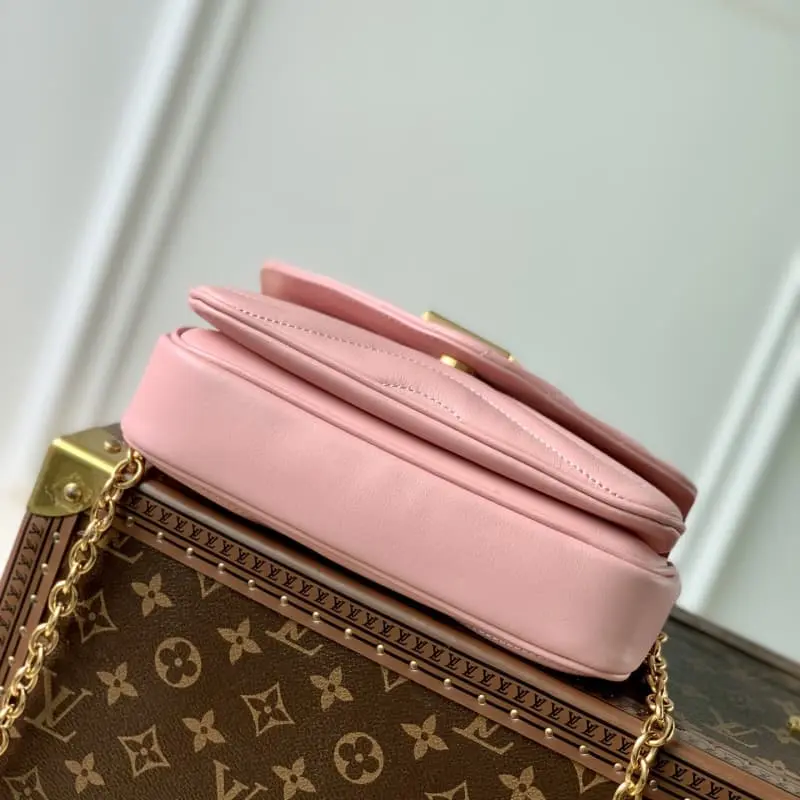 20686 New Wave Small Chain Bag combines the Wave Chain Bag and the Multi Pochette Accessoires in one. Padded quilted calfskin leather shapes the wave-shaped sliding chain shoulder strap, allowing for long or short shoulder and crossbody options. Details 21 x 12 x 9 cm