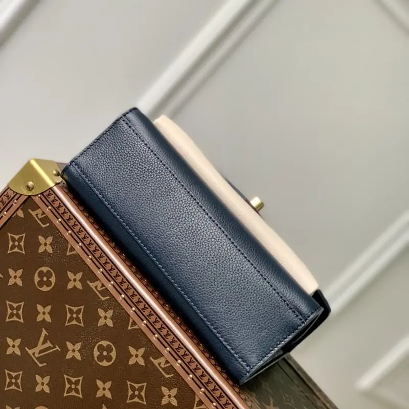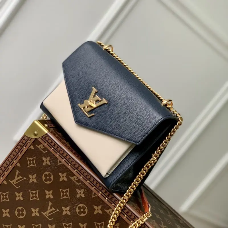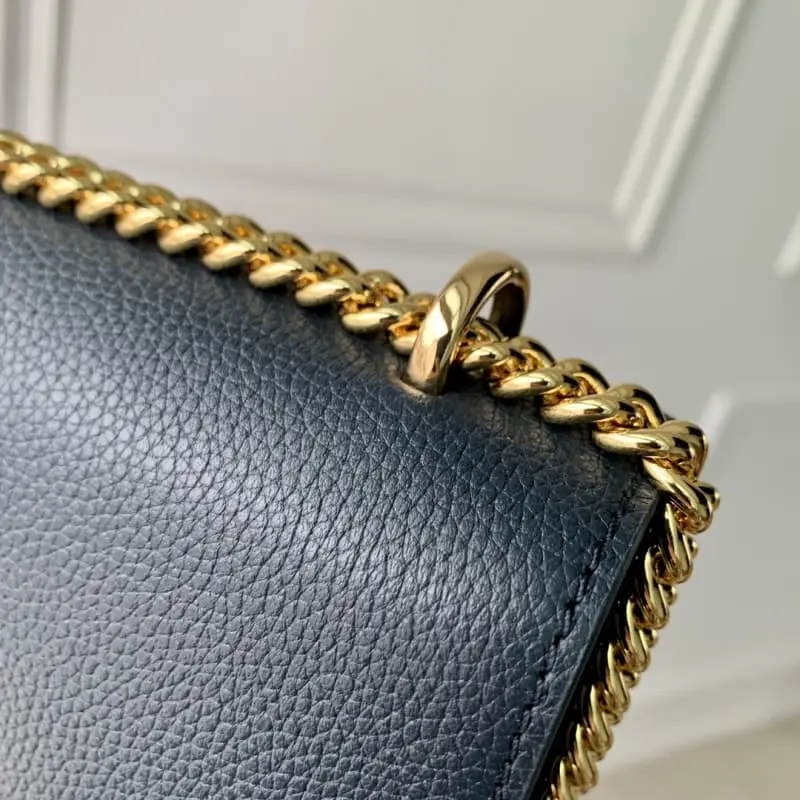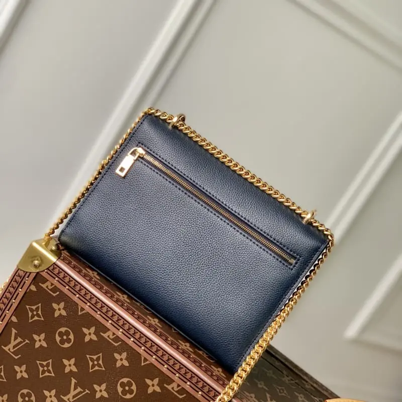 M20982 Royal Blue Myrakmi chain handbag adds an elegant touch to everyday and evening outfits with its subtle color. Made of gran kavsky. The chain with a unique LV rock and gold finish highlights the elegant structure. The long shoulder strap can be used as a crossbody bag or two lines can be stacked to form a short shoulder bag. 22.5 x 17 x 5.5 cm (length x height x width)