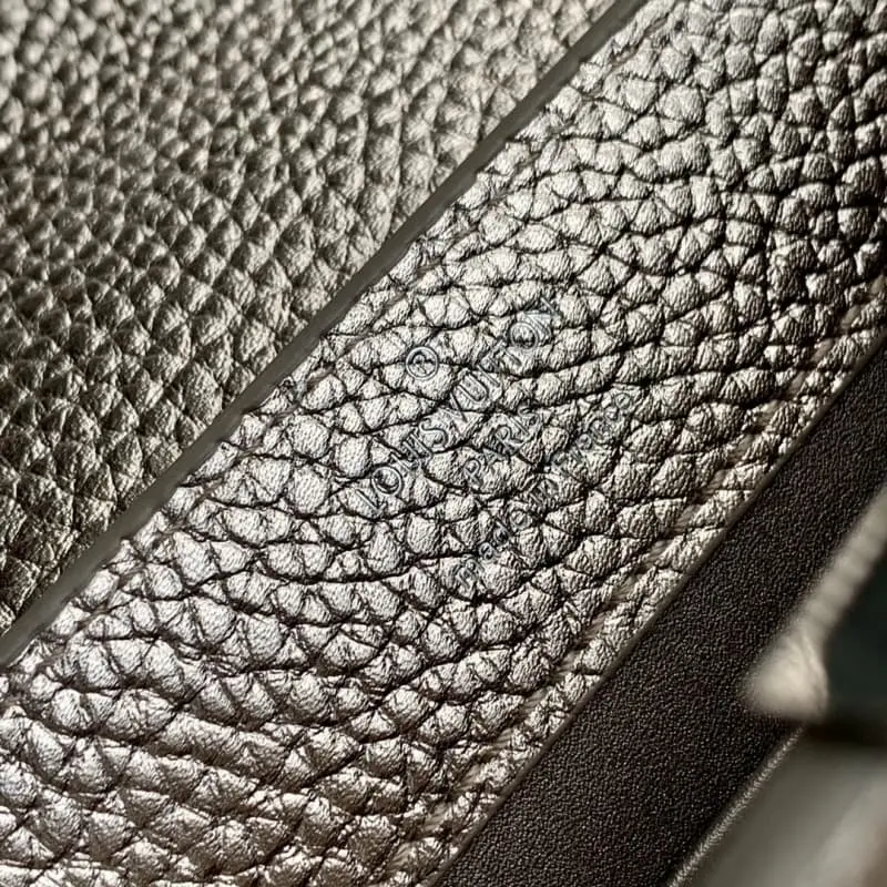New product top replica M21102/silver gray chain clause This Capucines mini handbag uses metallic dye to give Taurillon leather a subtle luster that complements the color of the metal parts. The detachable chain outside the top handle also has the same pearlescent leather braided structure Size: 21*14*8cm